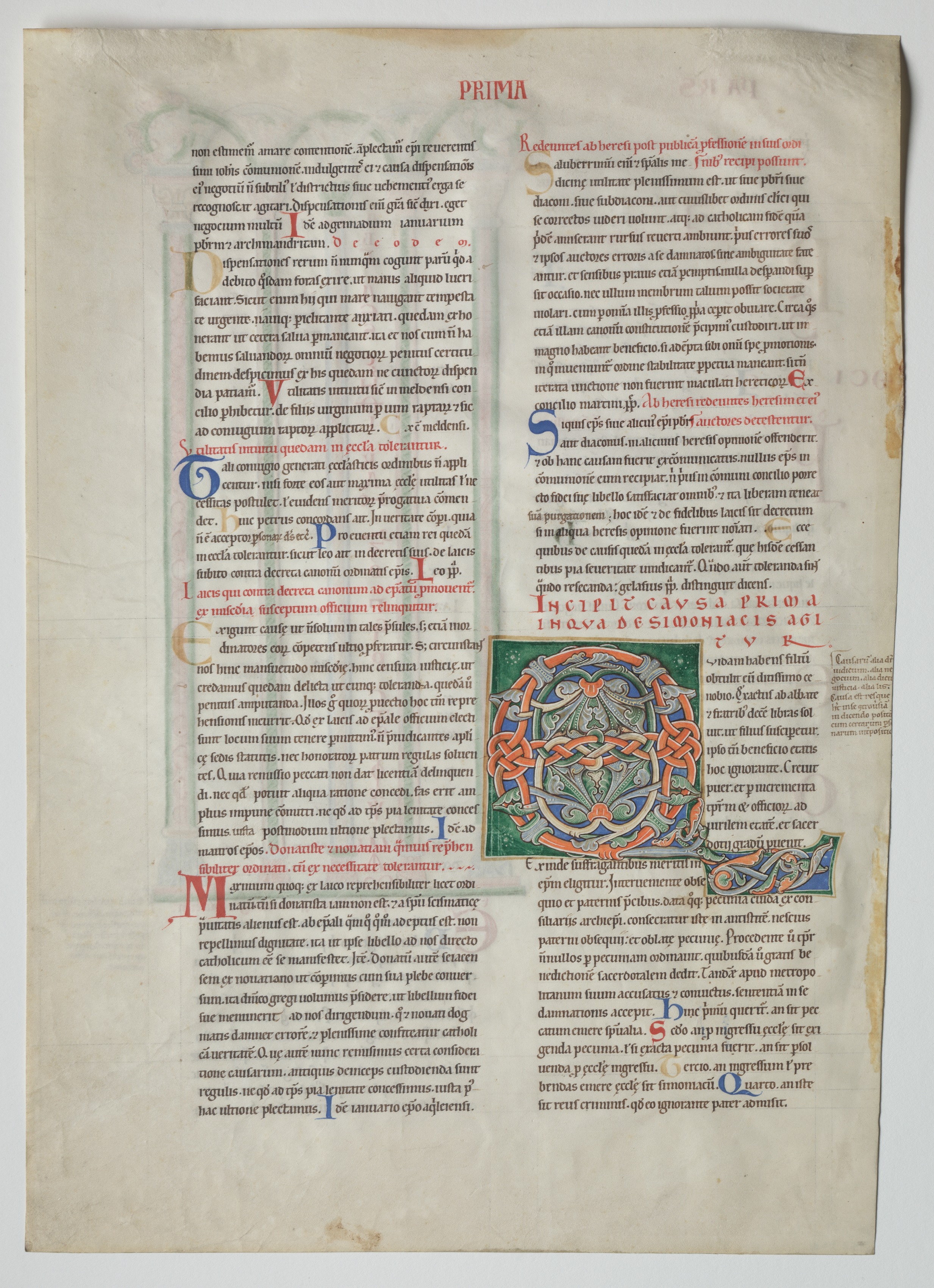 Single Leaf from a Decretum by Gratian: Decorated Initial Q[uidam habens filium obtulit]