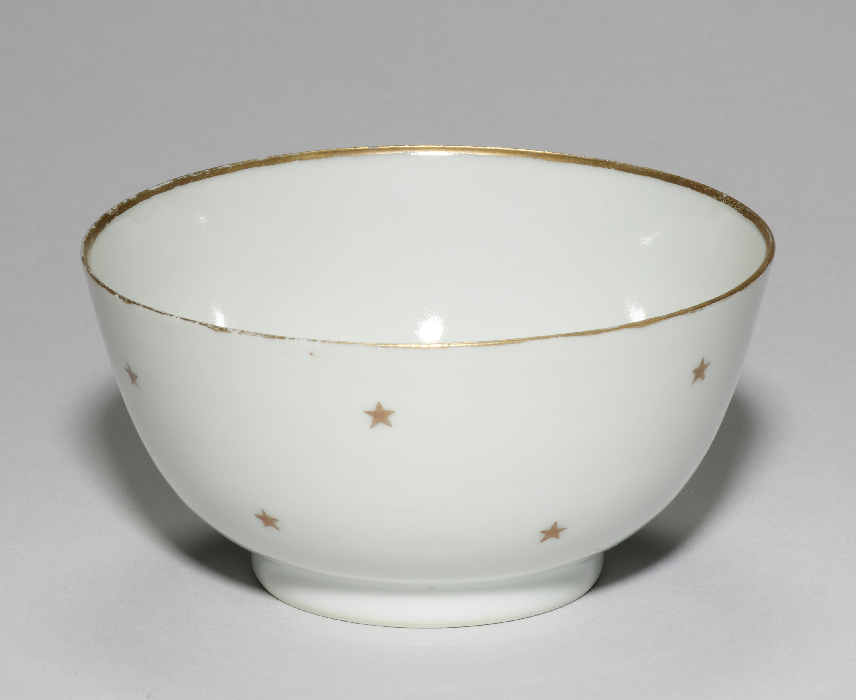 White bowl with gold stars and rim, Cup, artist not specified.