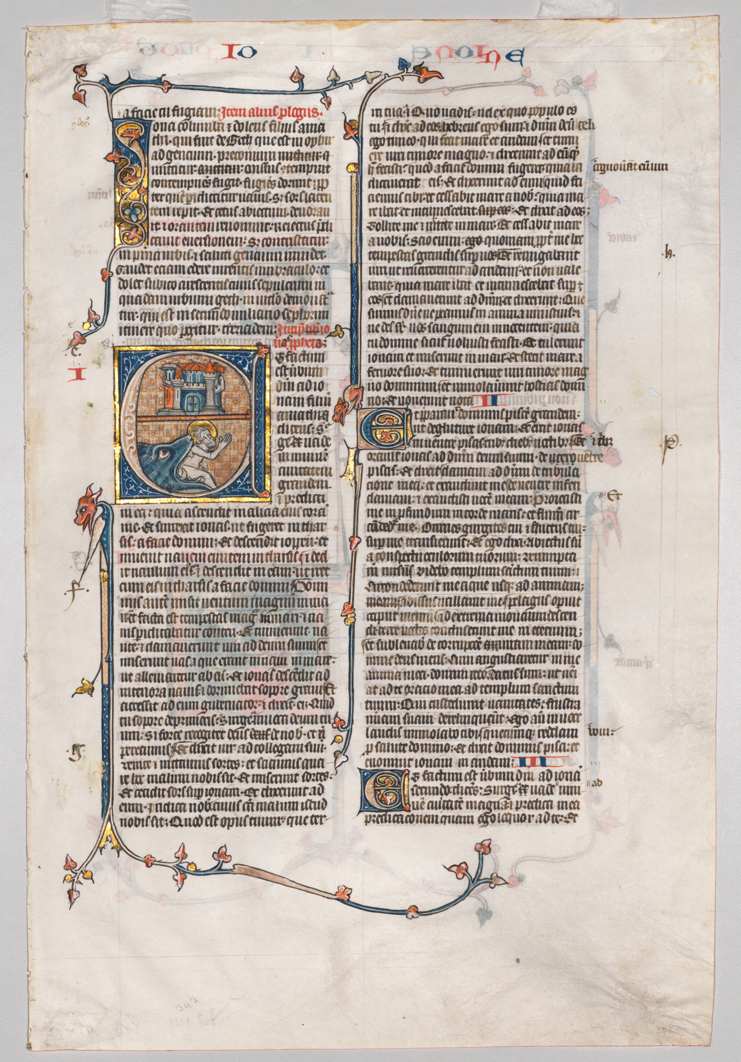 Single Leaf from a Bible: Initial E[t factum est] with Jonah Swallowed by the Whale