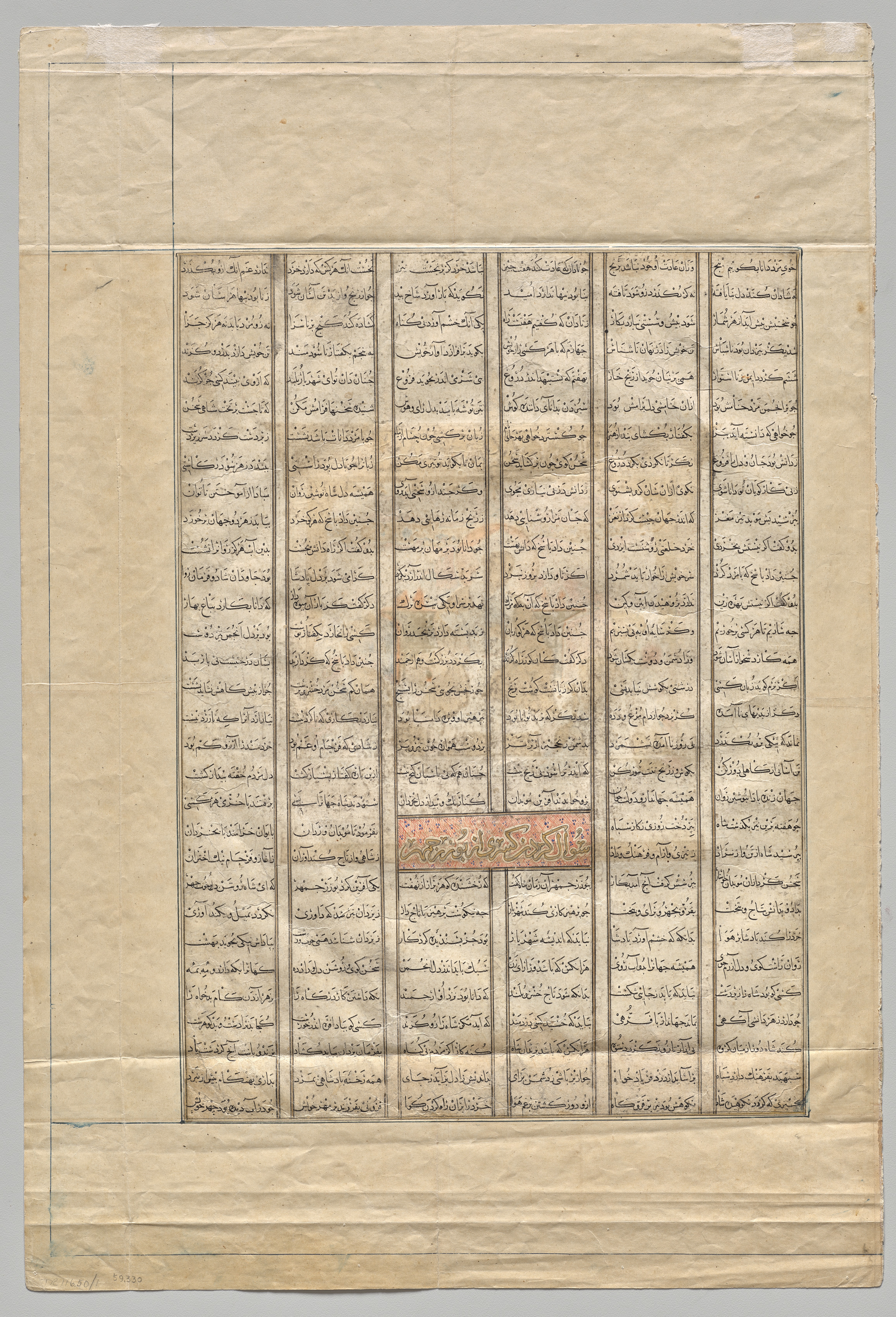 Persian Verses: The Fortieth Year of King Kisra Nushirwan's Reign and the Story of Buzurgmihr (recto) from a Shahnama (Book of Kings) of Firdausi (940–1019 or 1025)