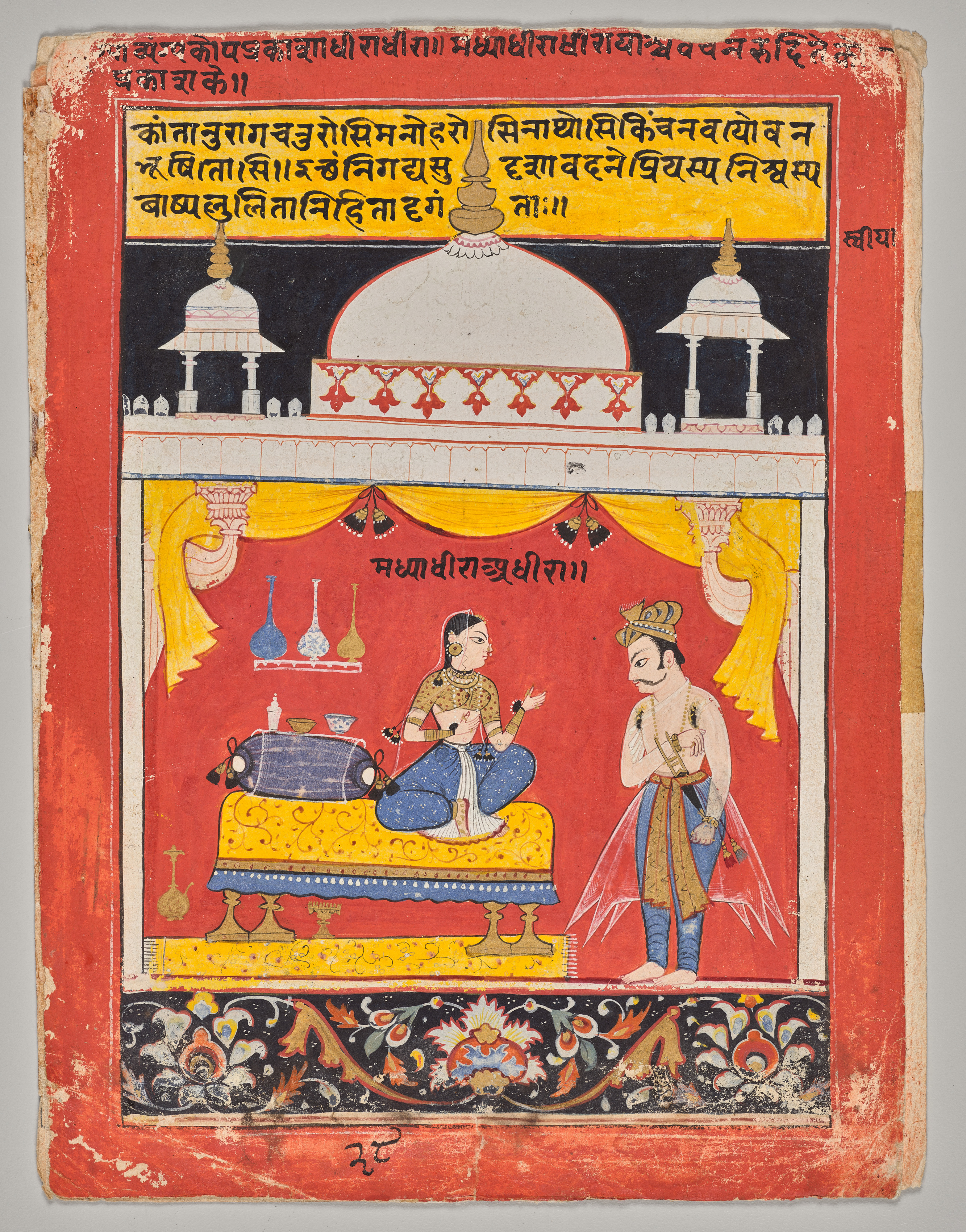 A Heroine and Her Lover in a Pavilion: Page from a Dispersed Nayikabheda