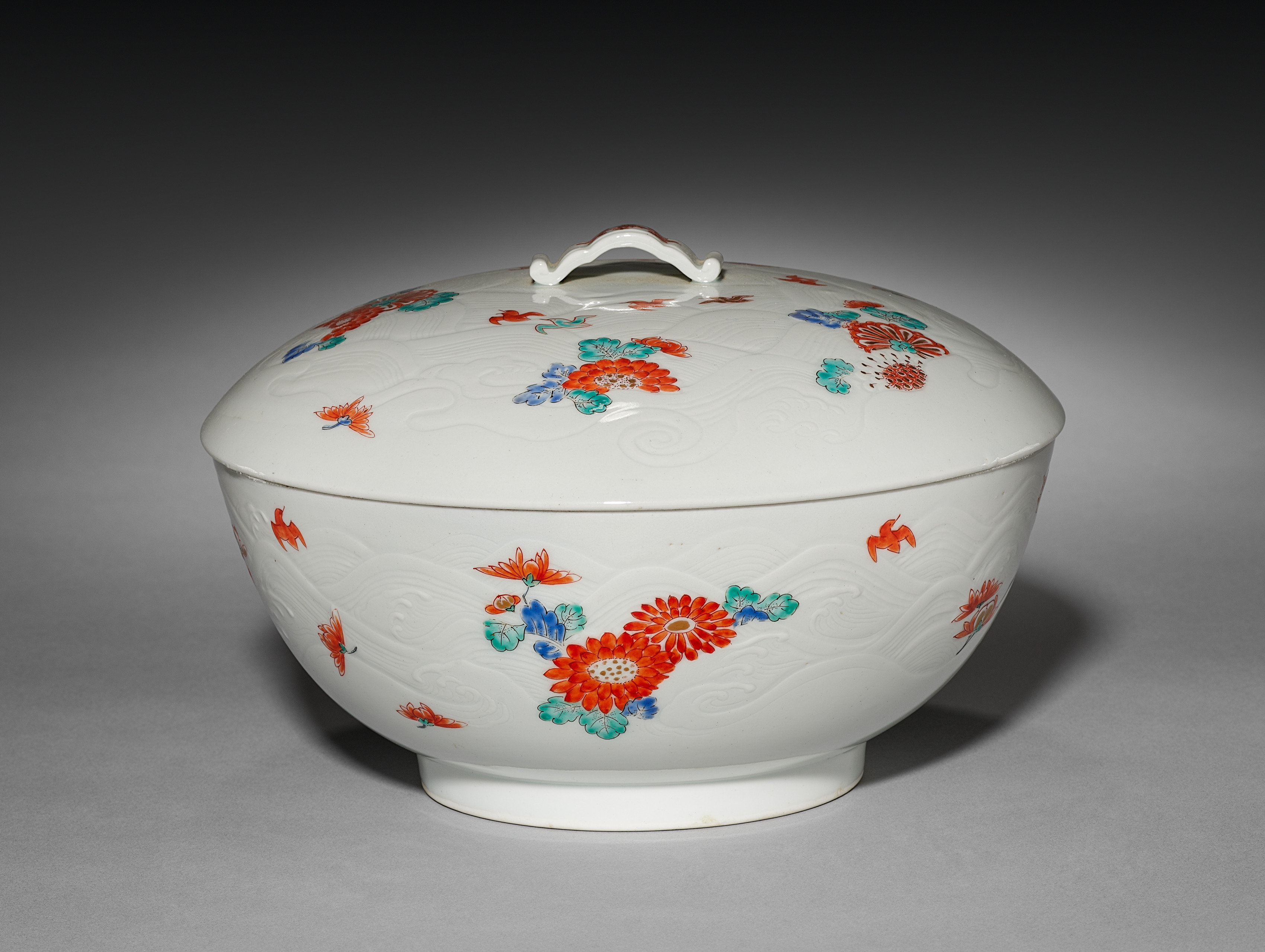 Covered Bowl with Chrysanthemums and Chidori: Kakiemon Ware