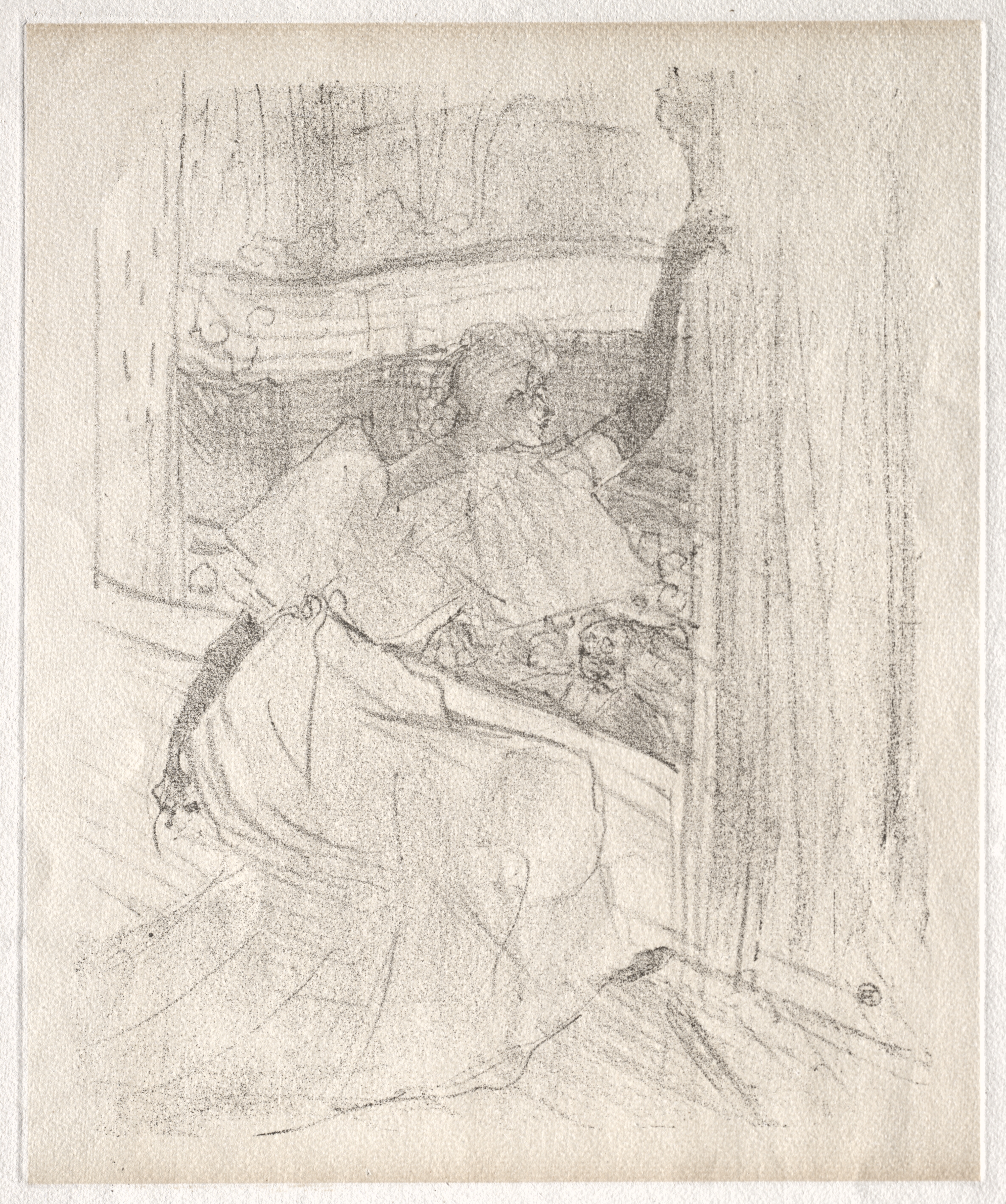 Sketchbook, page 71: Study of a Figure Reading in Bed, Study of a Hand