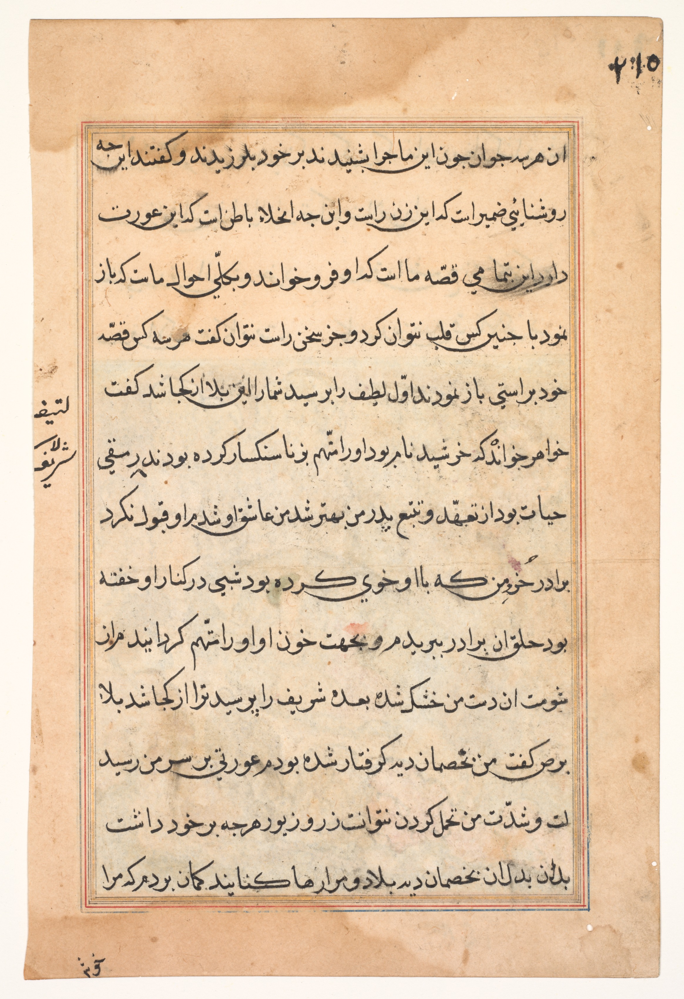 Text, Folio 9 (verso), from a Mirror of Holiness (Mir’at al-quds) of Father Jerome Xavier