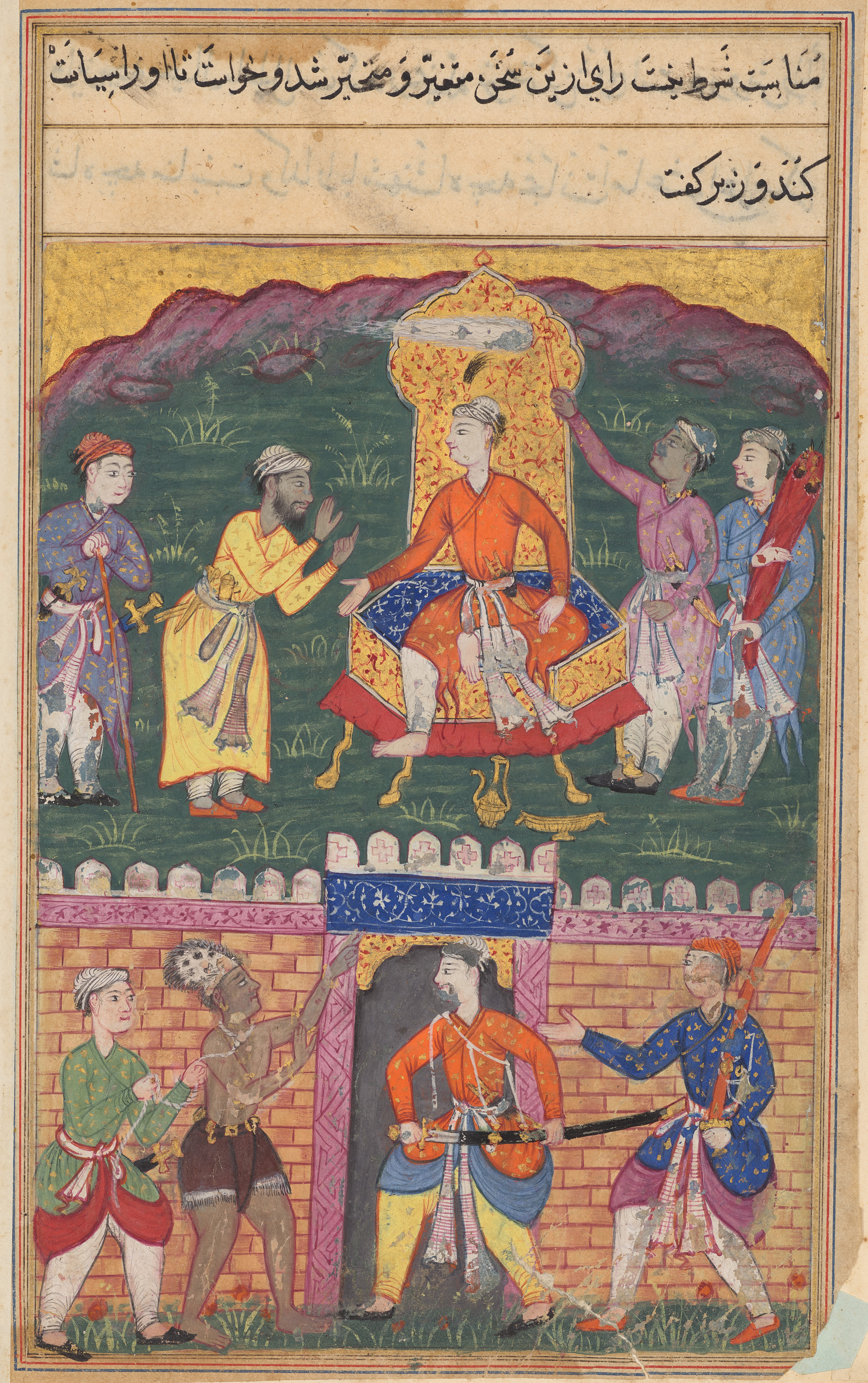 The vizier dissuades the king of Bahilistan from executing the dervish who asks for his daughter’s hand in marriage, from a Tuti-nama (Tales of a Parrot): Seventh Night