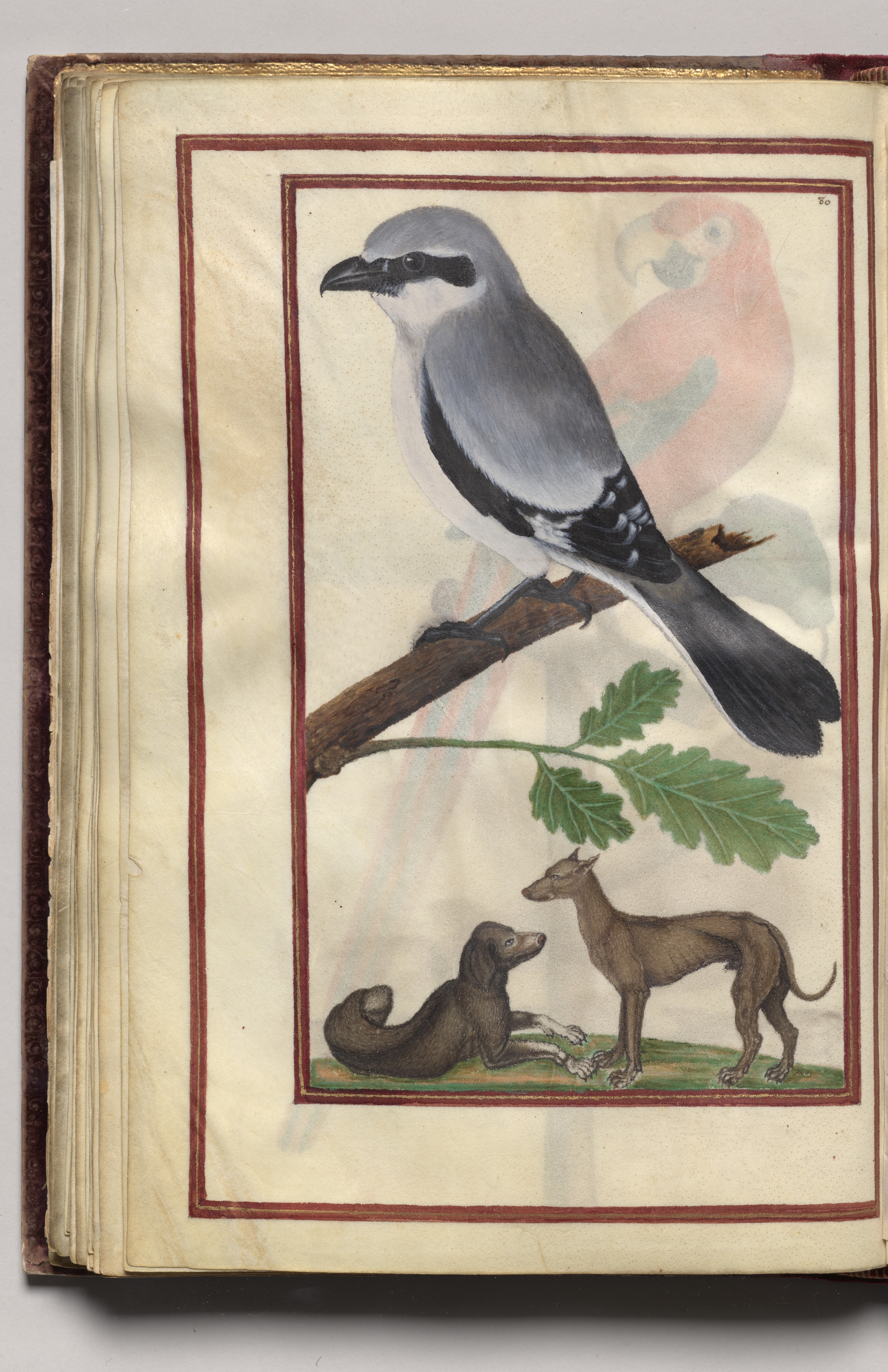 Gray Bird with Two Dogs, folio 38 (verso), from Florilegium (A Book of Flower Studies)