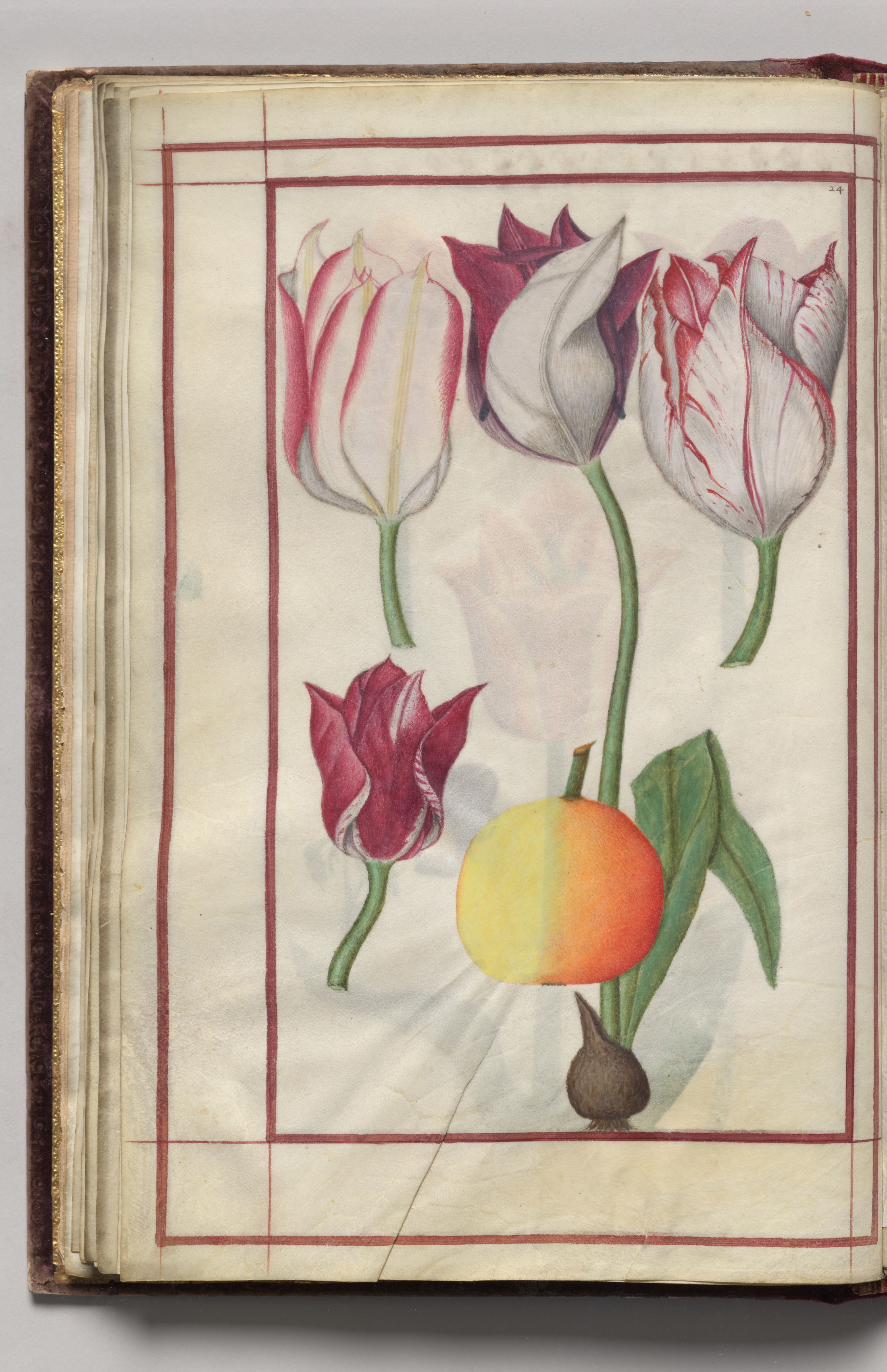 Tulips and Fruit, folio 14 (verso), from Florilegium (A Book of Flower Studies)
