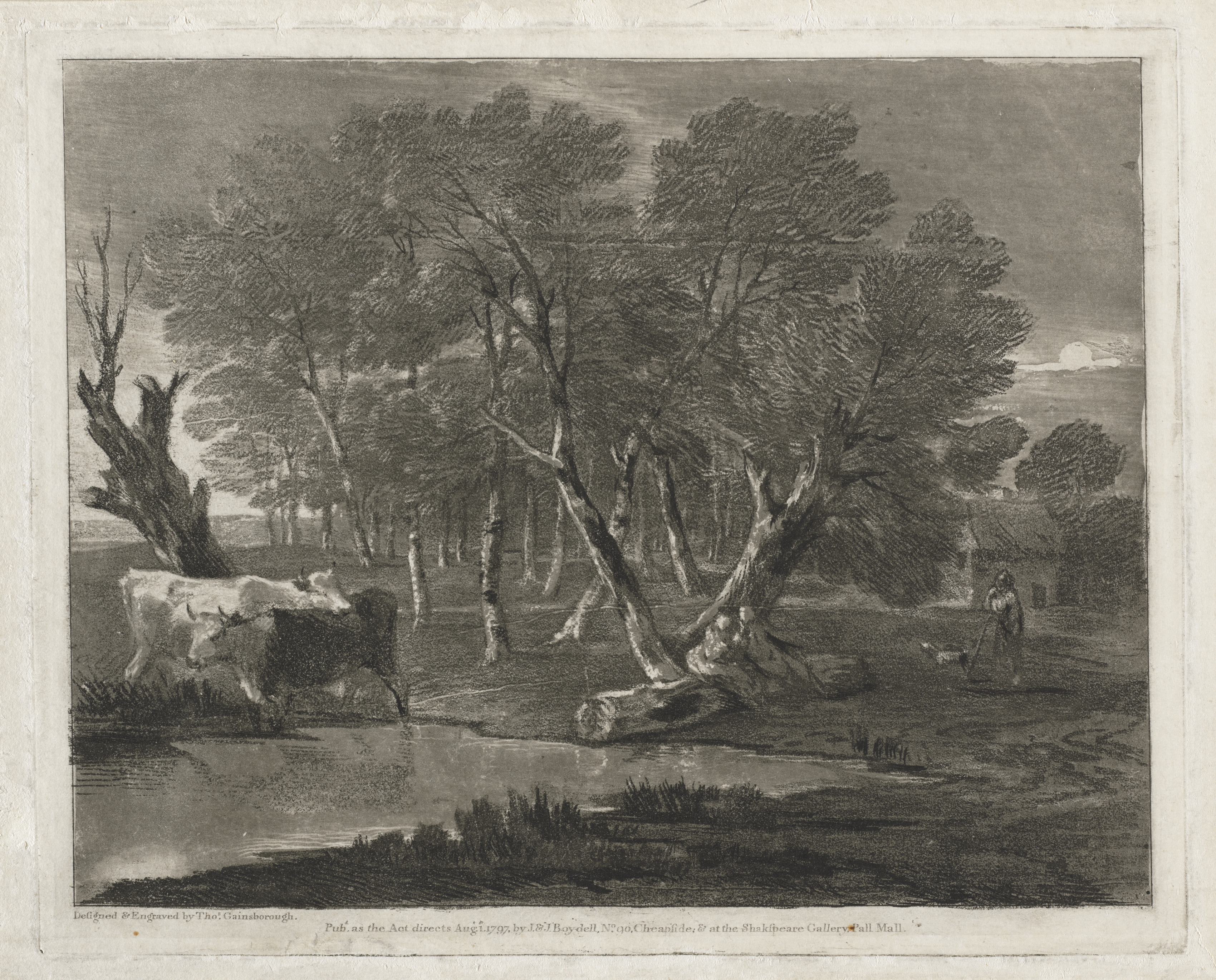 Wooded Landscape with Cows beside a Pool, Figures and Cottage