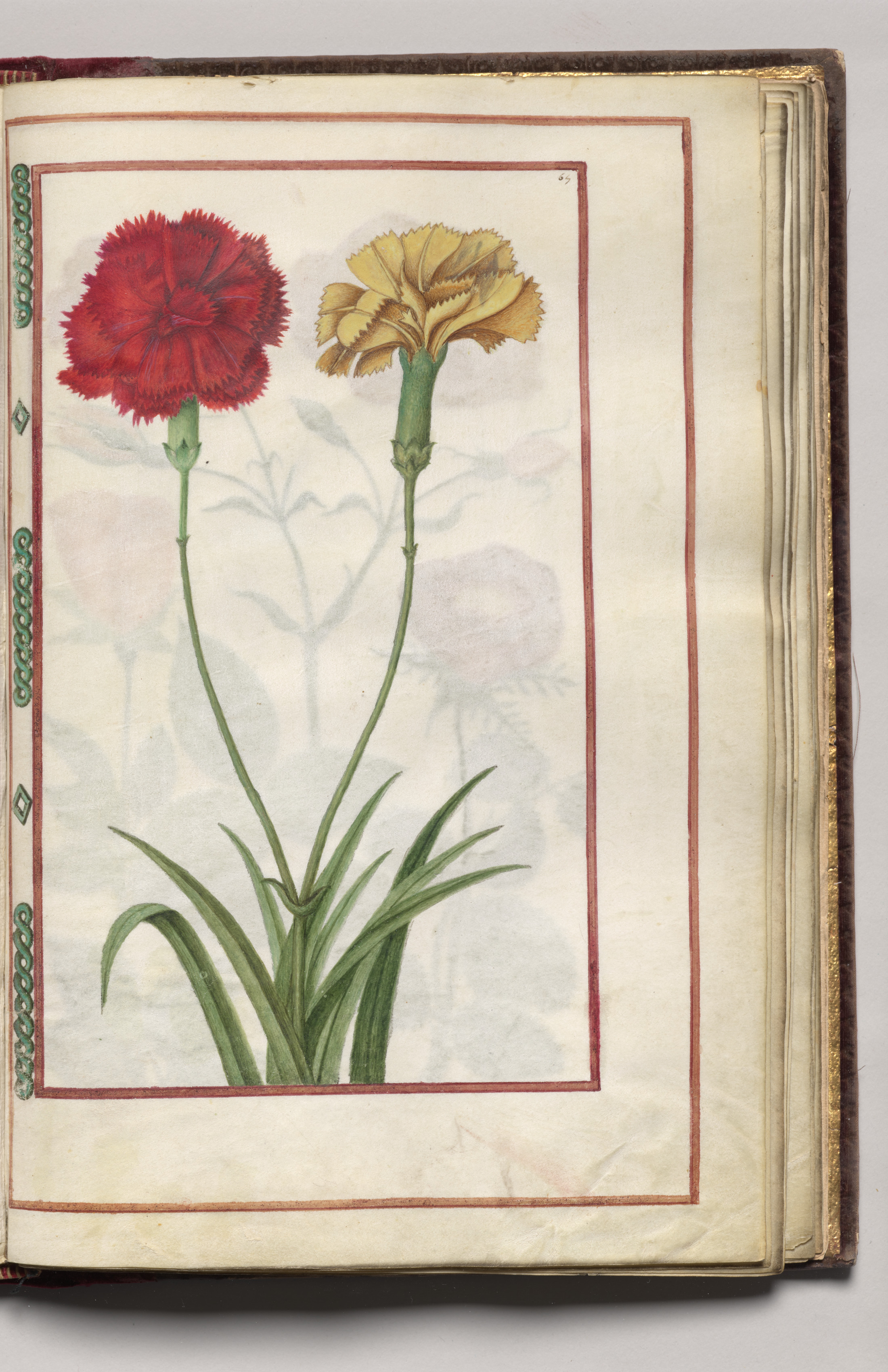 Red and Yellow Carnations, folio 33 (recto), from Florilegium (A Book of Flower Studies)