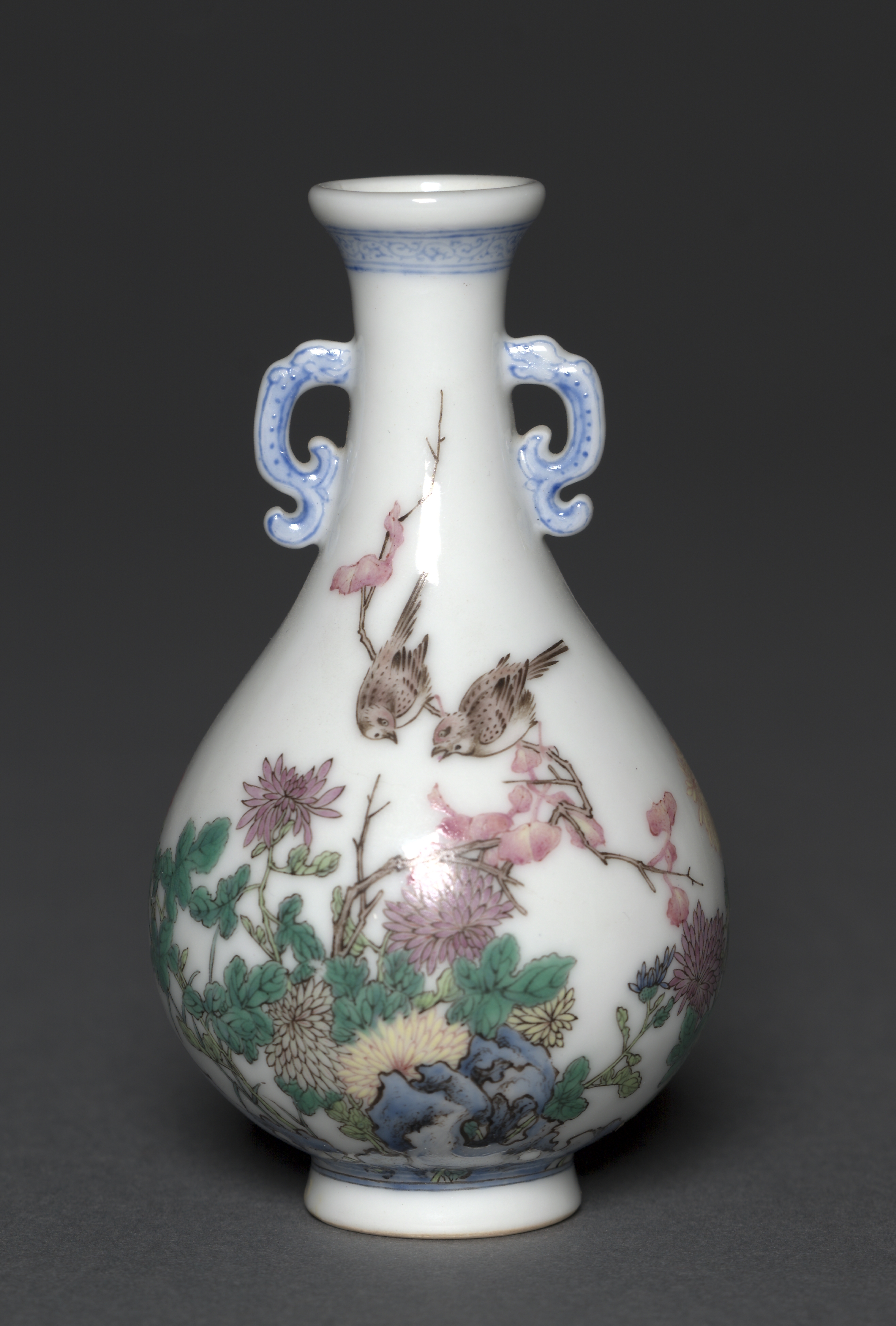 Pair of Miniature Vases with Birds and Chrysanthemums