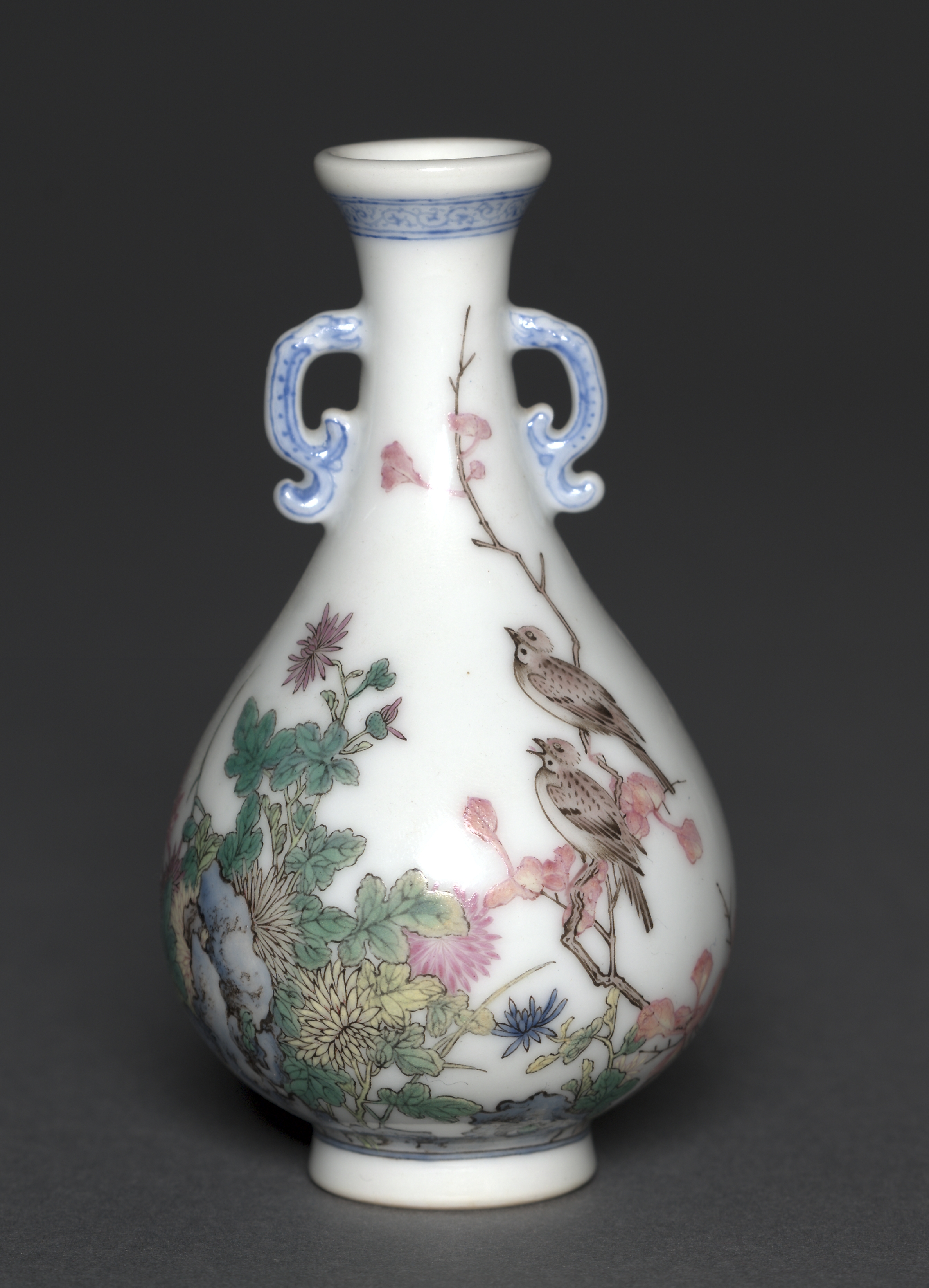 Miniature Vase with Birds and Chrysanthemums
