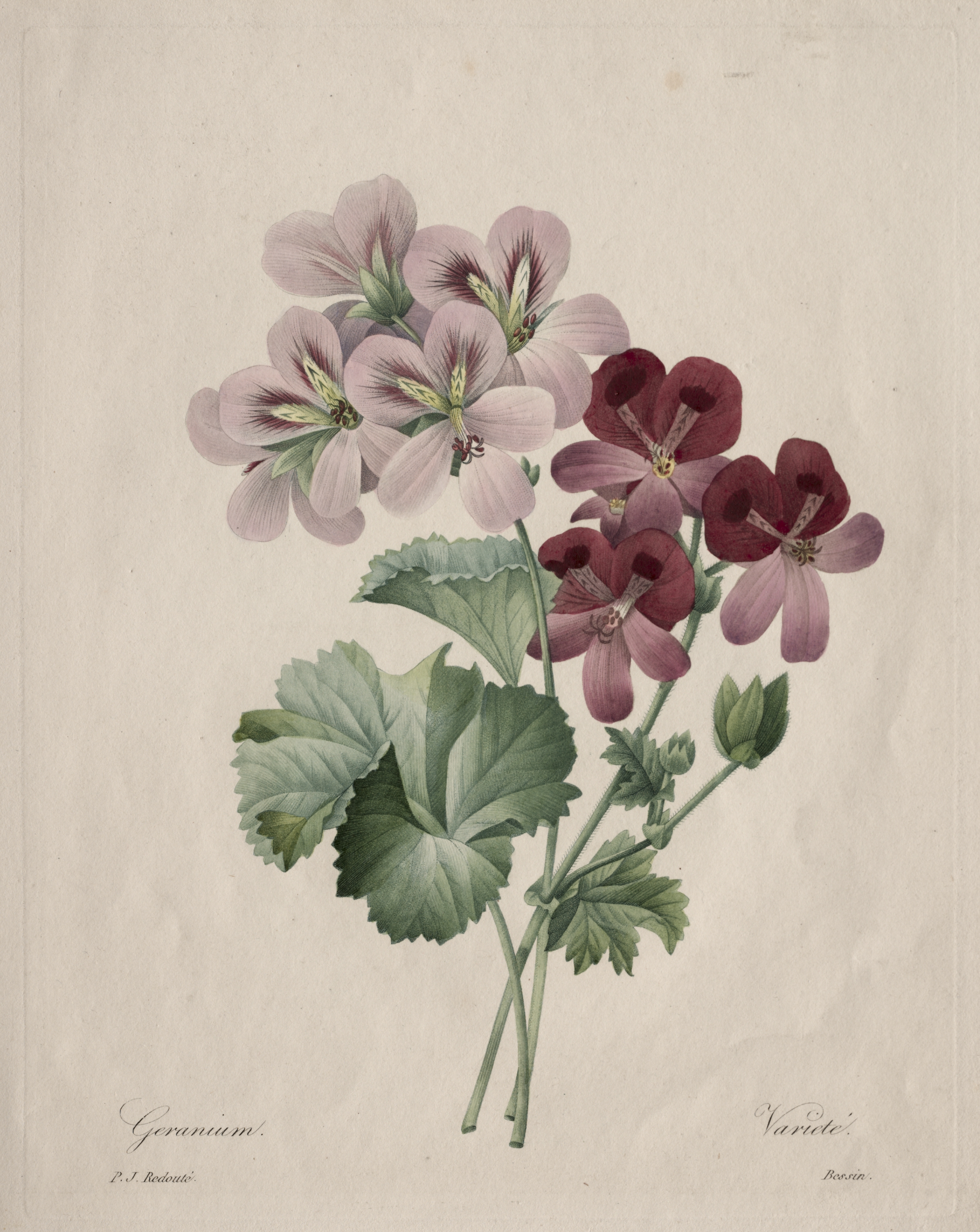 A Collection of Flowers Drawn from Nature: No. 6 - Scarlet and Variegated Geranium