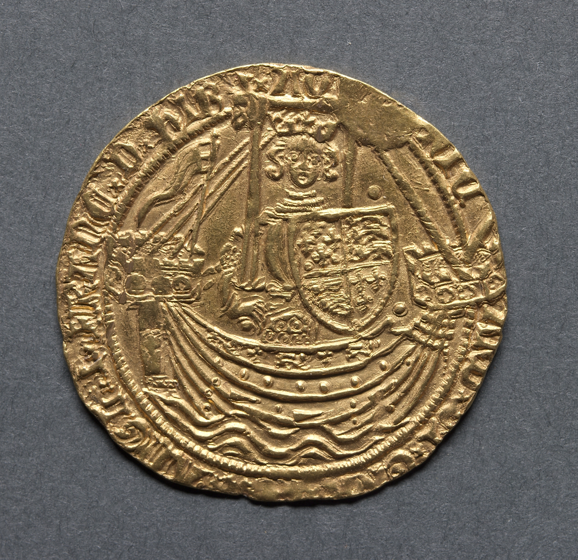 Noble: Edward III Standing in Ship with Shield of Arms (obverse); Ornamental Cross with Lis Terminals (reverse)