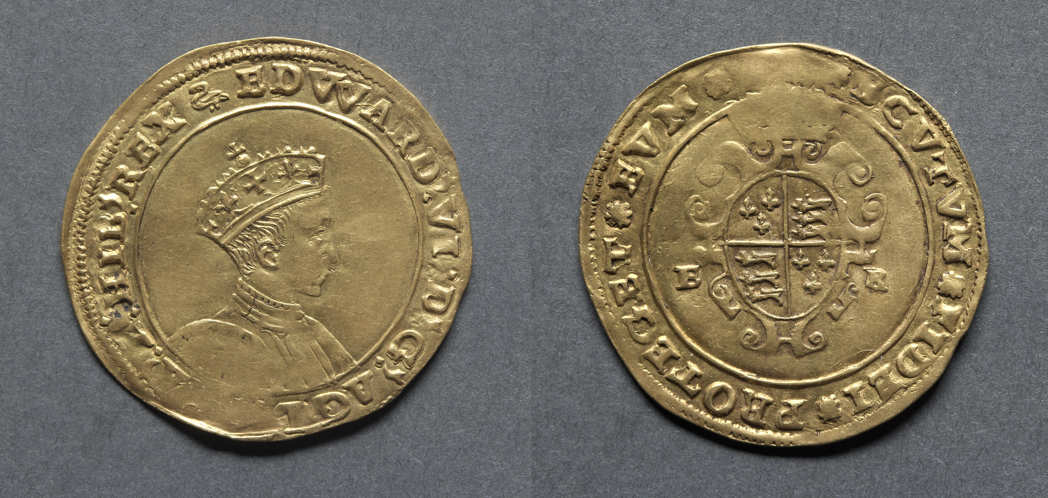 Half Sovereign: Edward VI (obverse); Crowned Royal Arms (reverse)