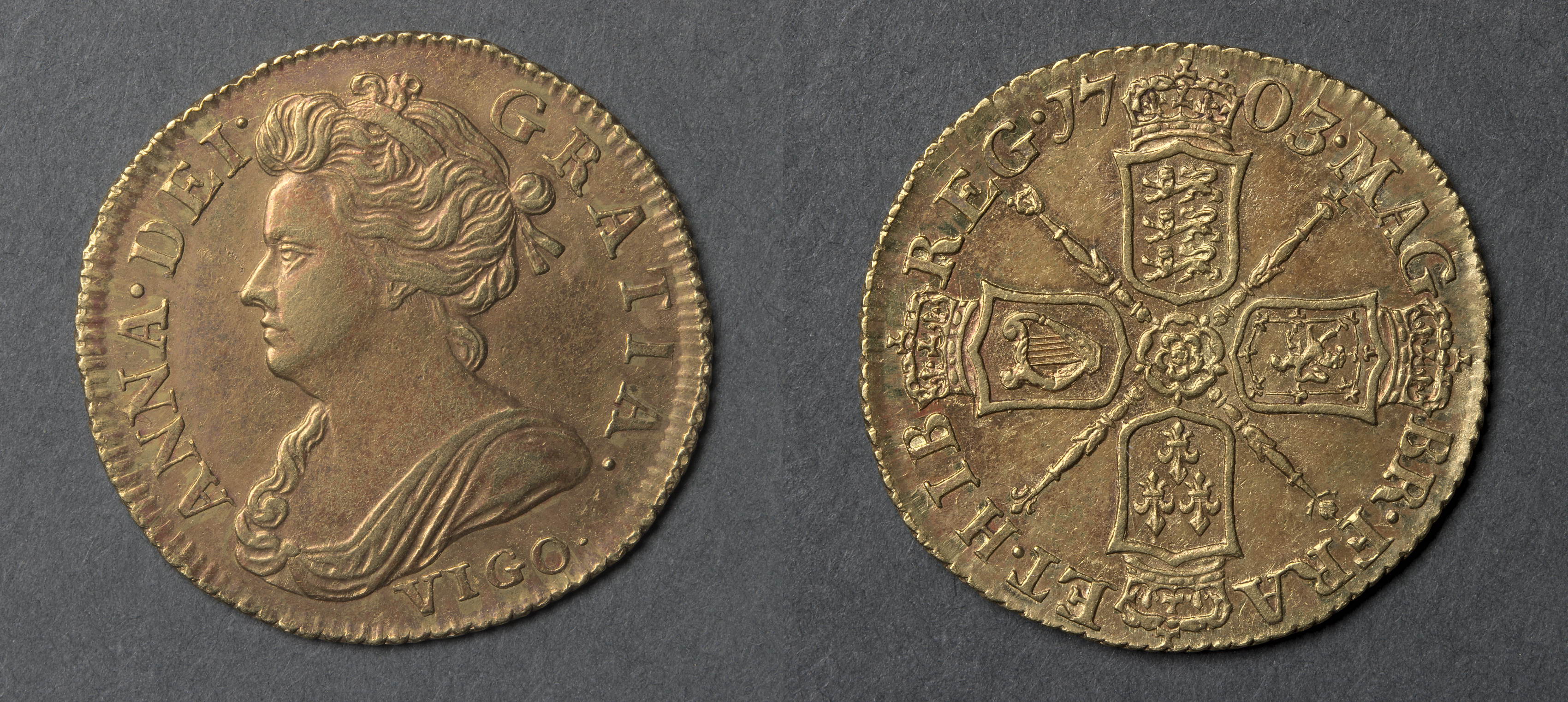 Half Guinea: Anne (obverse); Shields and Rose (reverse)