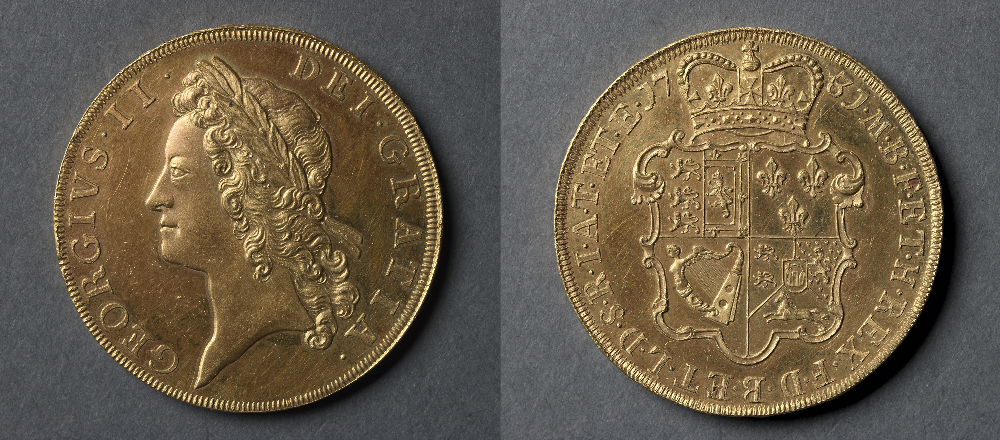 Five Guineas: George II (obverse); Shield of Arms (reverse)