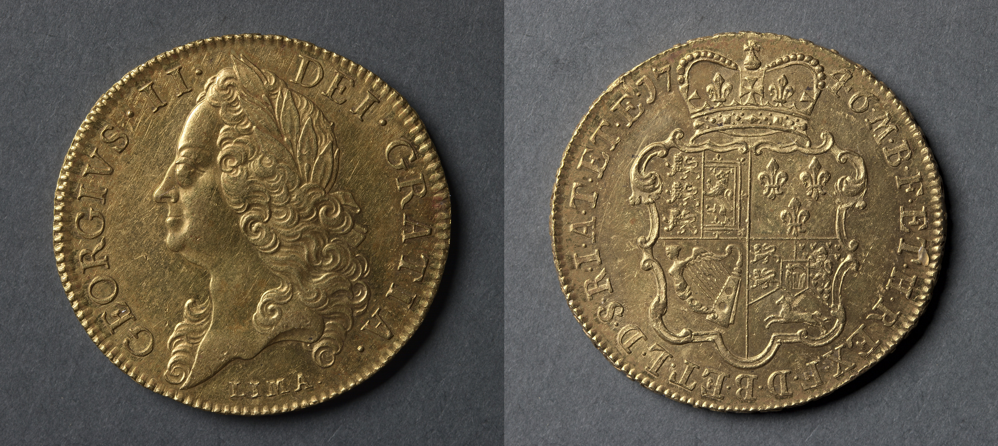 Five Guineas: George II (obverse); Shield of Arms (reverse)
