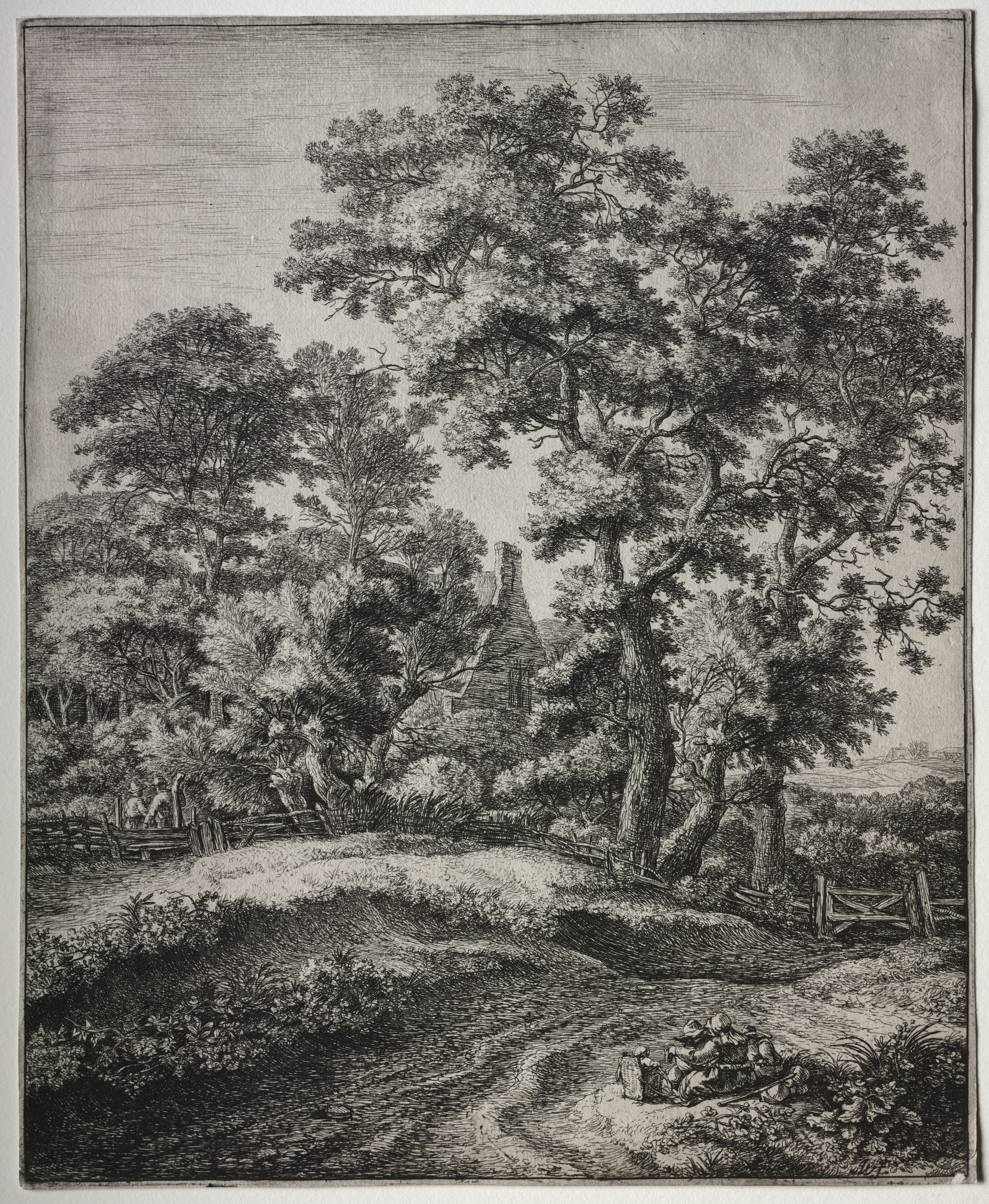 Six views in the Wood of the Hague: Plate 1, Two Men Preceded by a Hunter