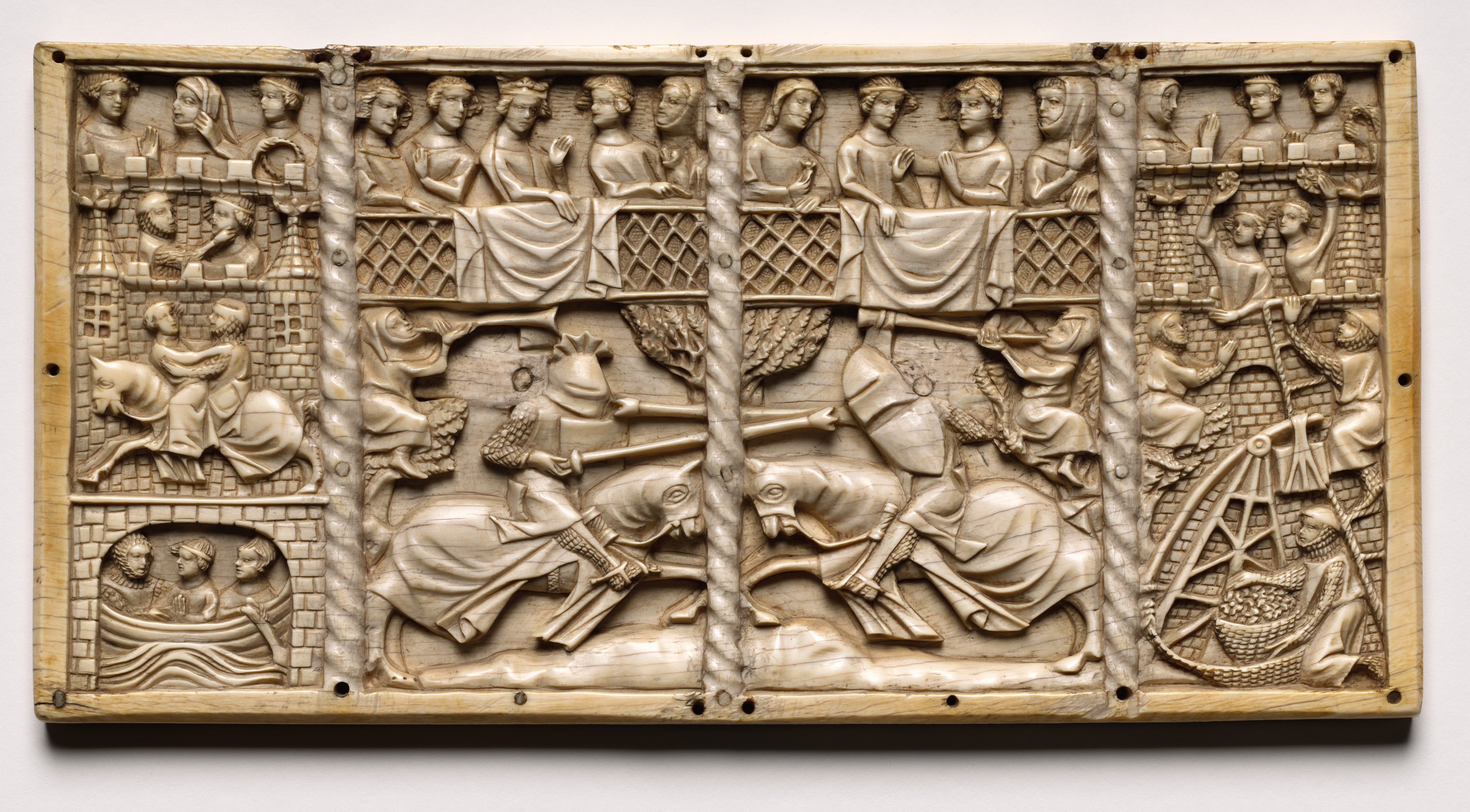 Set of Three Panels from a Casket with Scenes from Courtly Romances