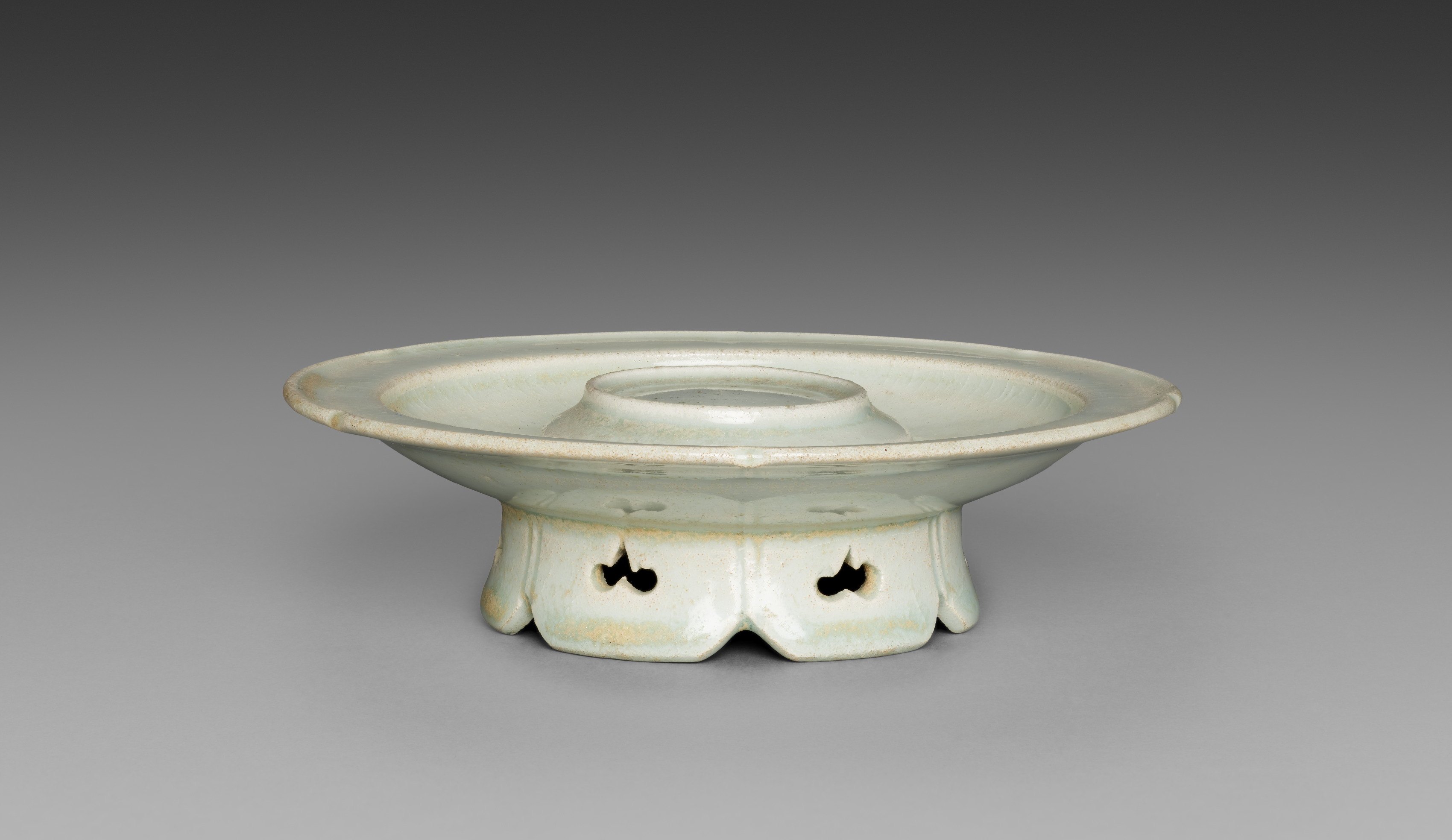 Floral-shaped Cup Stand with Inlaid Chrysanthemum Design