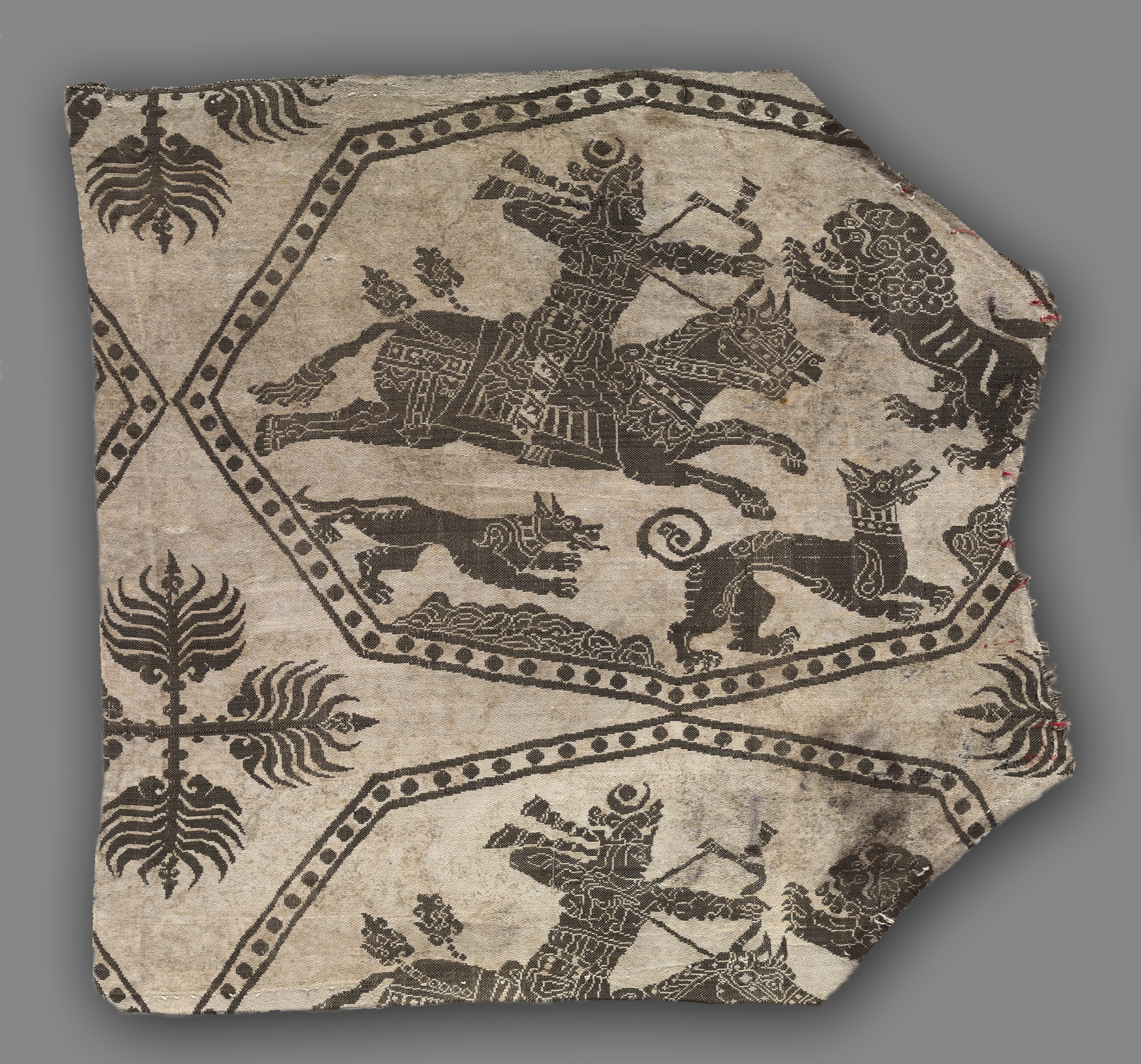 Fragment with crowned lions, palmettes, and escutcheons
