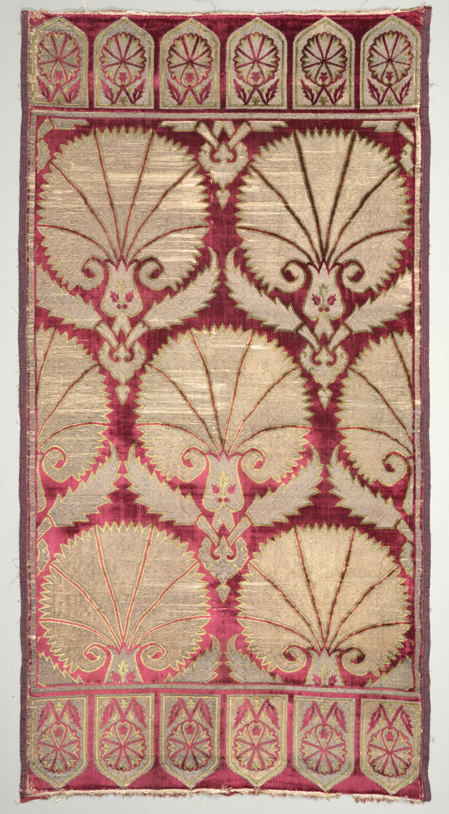 Brocaded velvet with medallions in ogival lattice