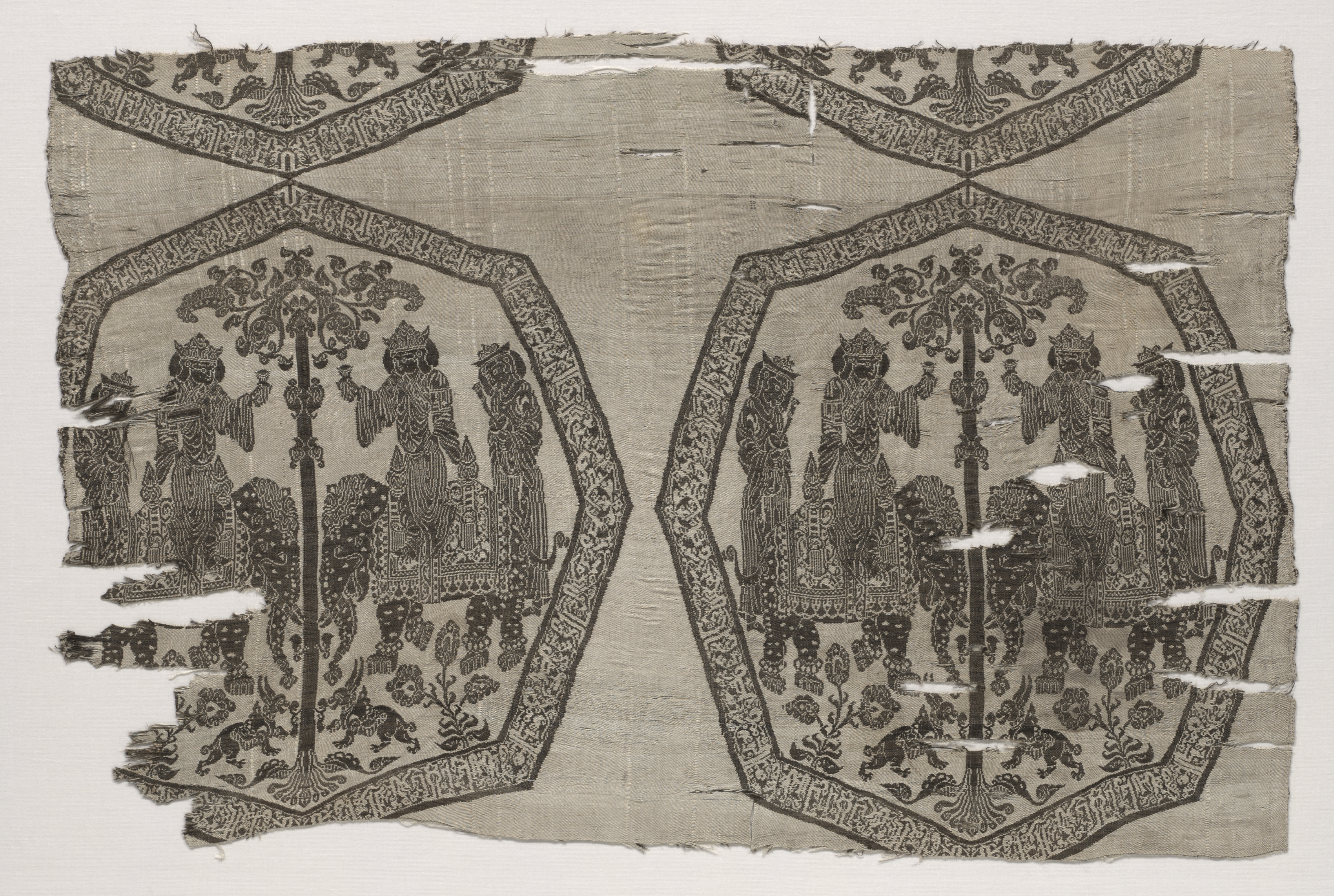 Samite fragment with hunters