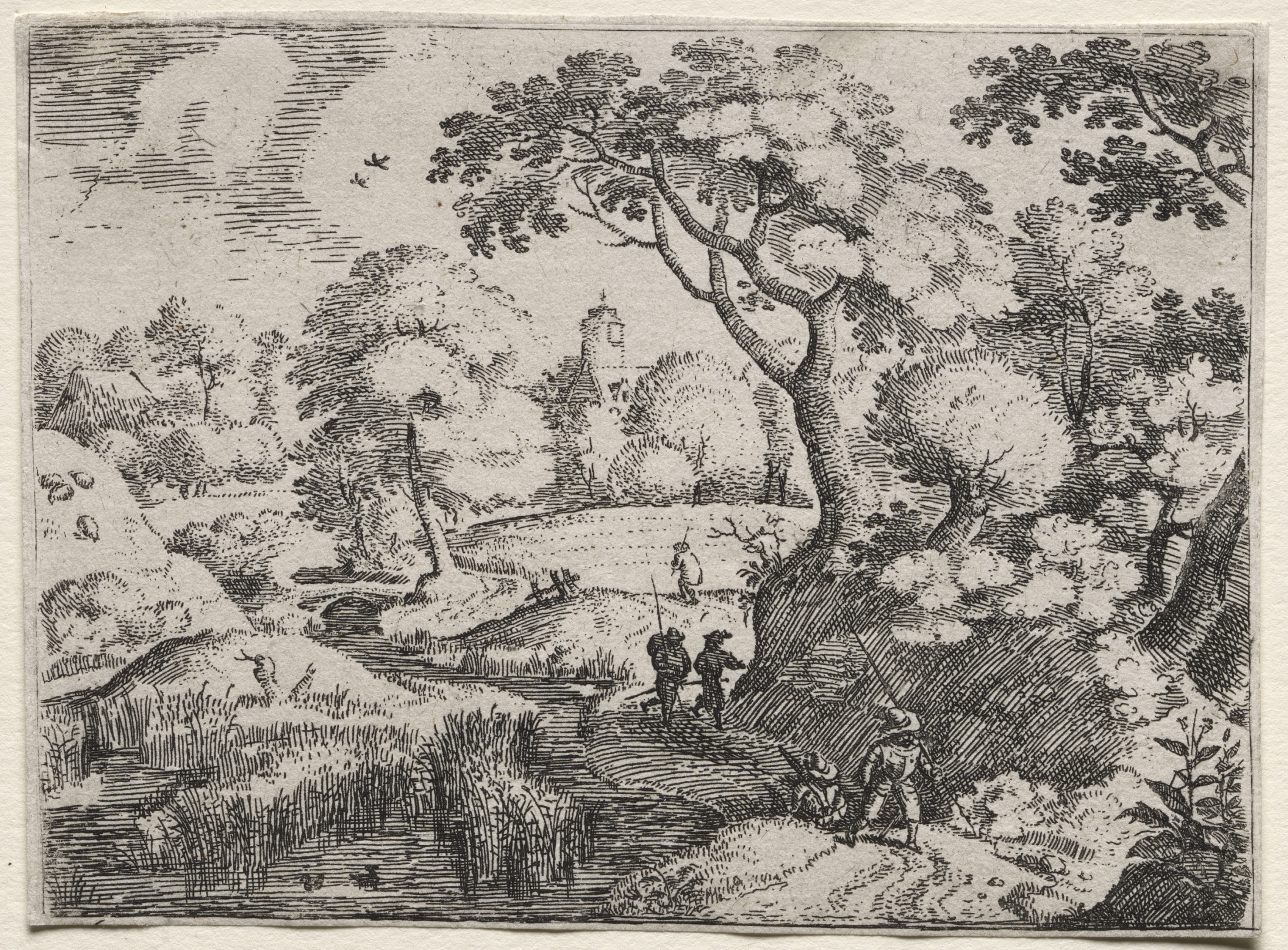Six views in the Wood of the Hague: Plate 1, Two Men Preceded by a Hunter