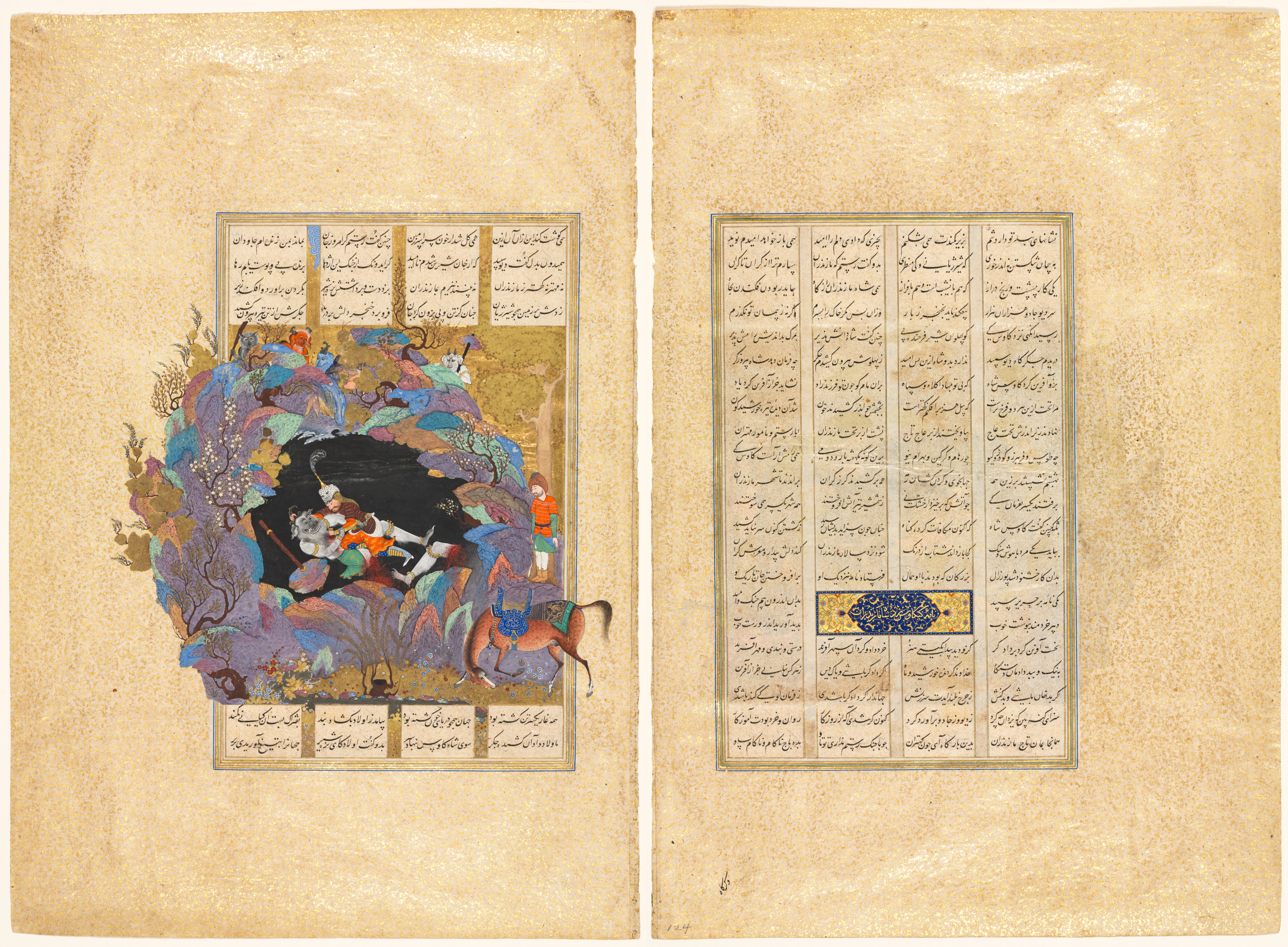Rustam's seventh course: He kills the White Div, folio 124 from a Shah-nama (Book of Kings) of Firdausi (Persian, about 934–1020)