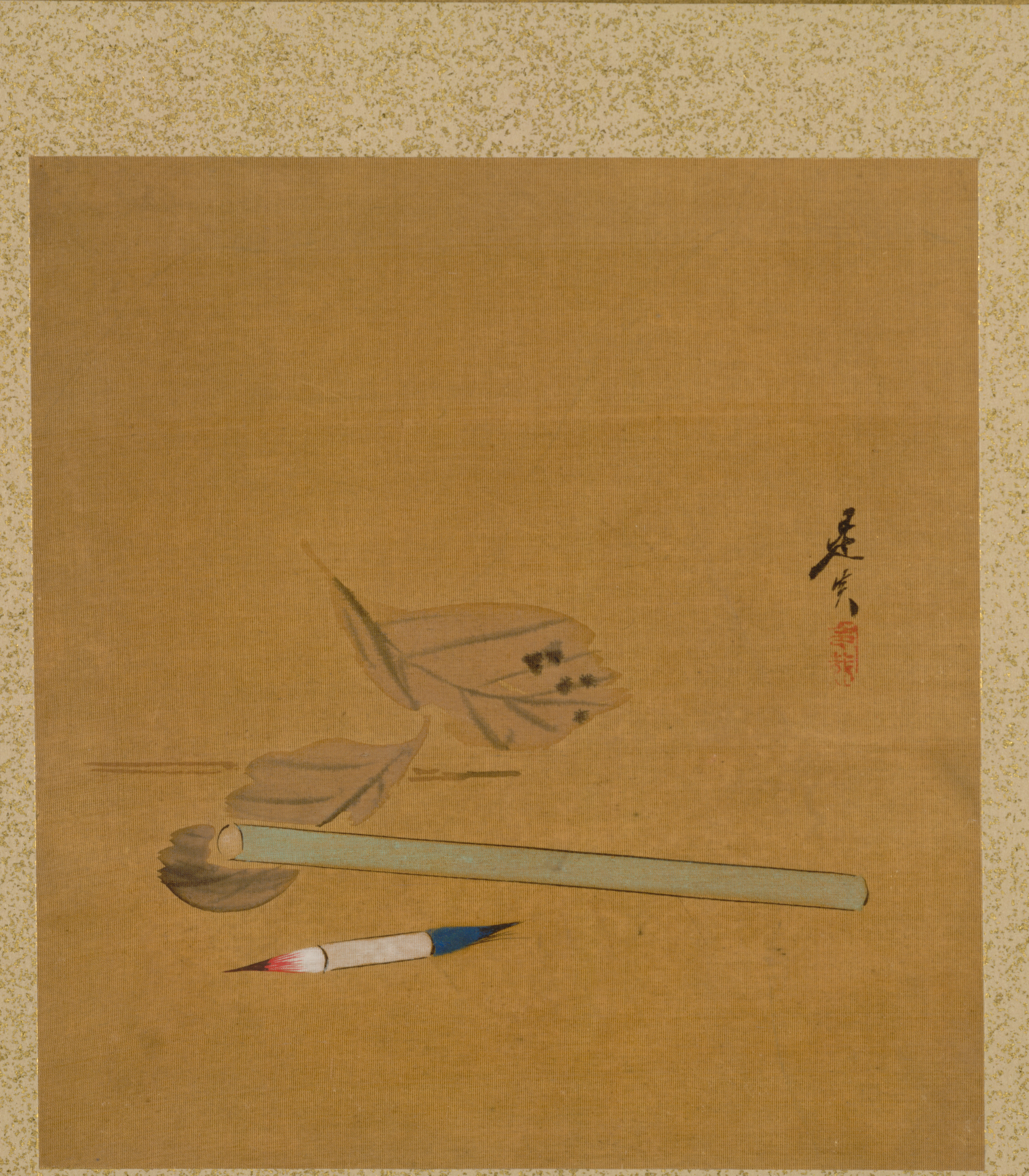 Brush, Holder, and Leaves from Album of Paintings by the Venerable Zeshin