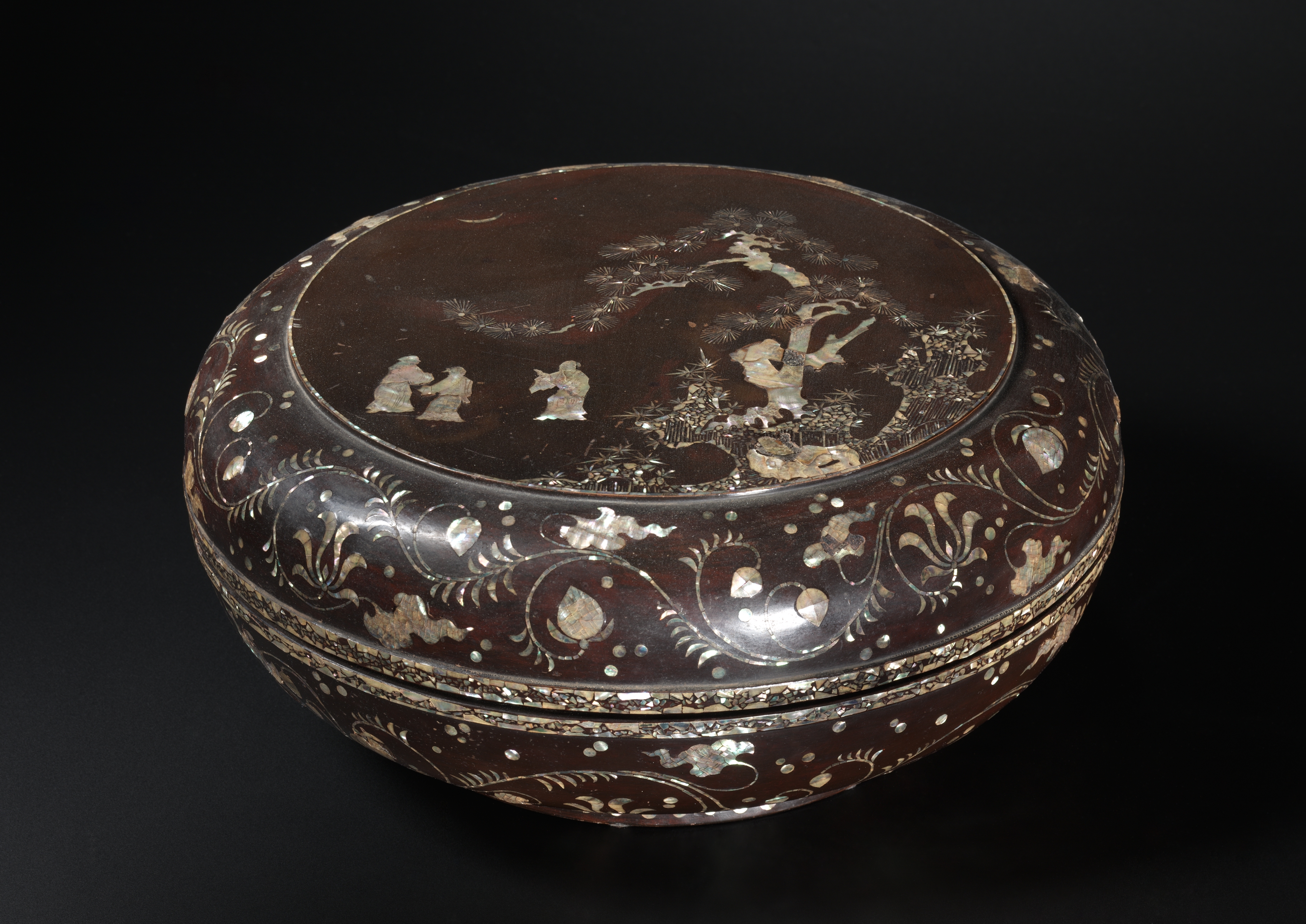 Box and Cover with Inlaid Chrysanthemum and Scroll Design
