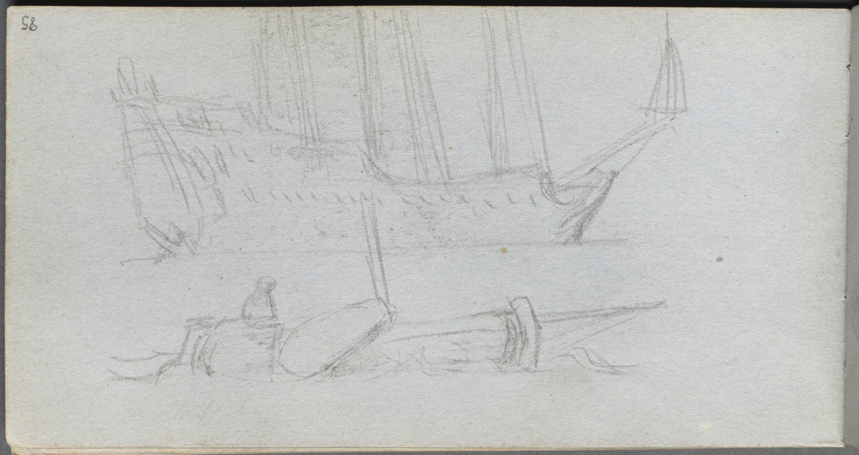 Sketchbook, page 43: Studies: Horse's leg, Figure in a Boat, and Profile