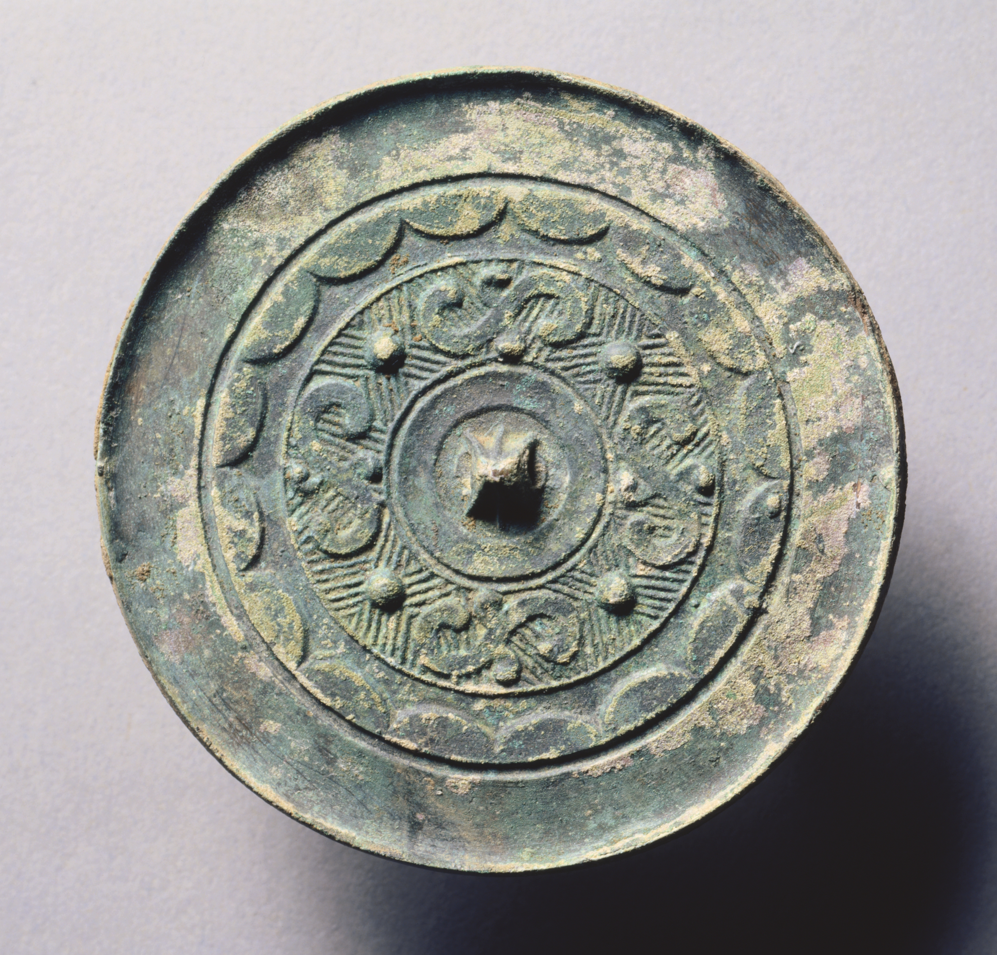 Mirror with a Square Band, Four Nipples, and Grass Leaf Motifs