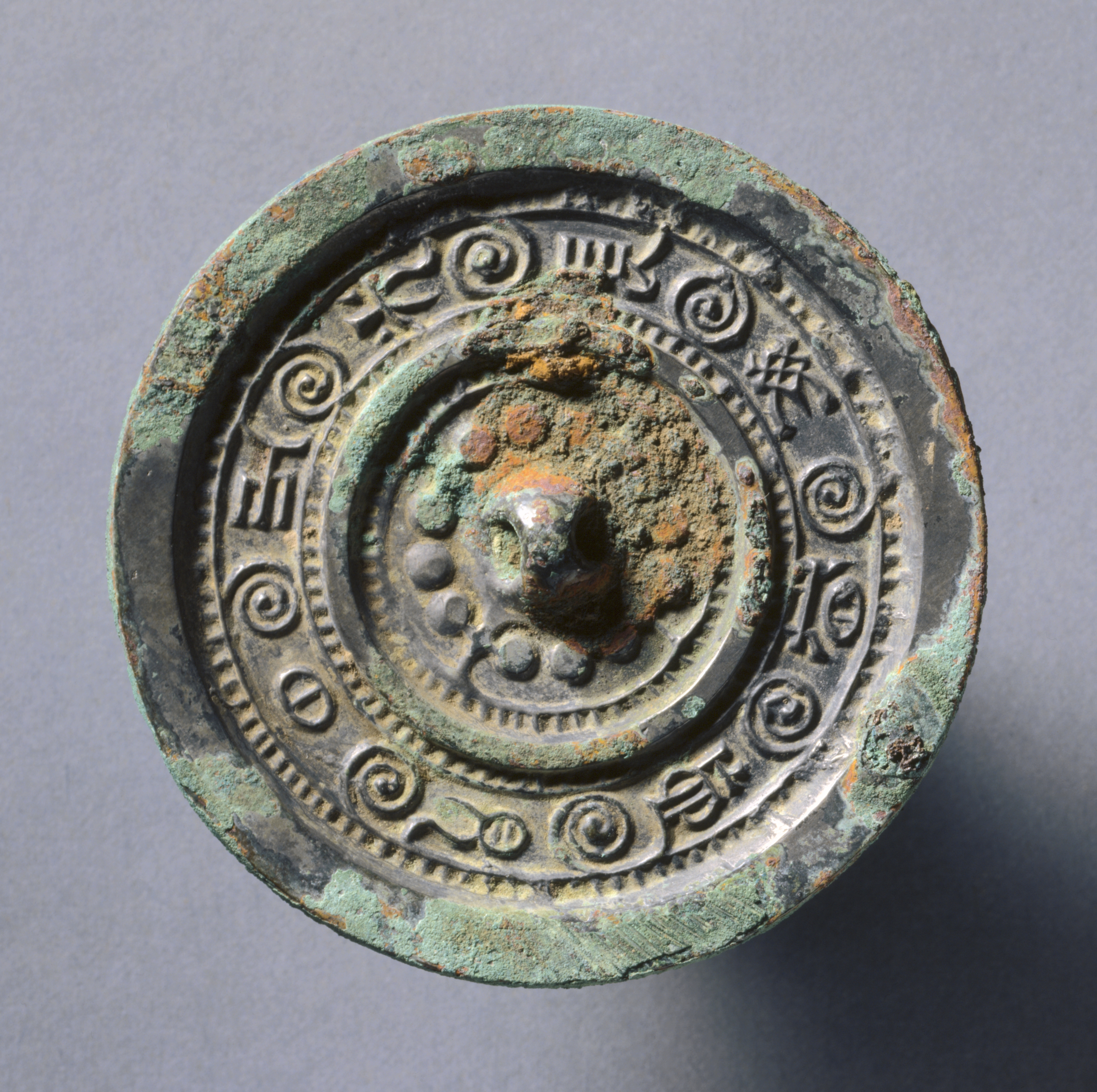Mirror with Deities and Animals Surrounded by Rings of Squares and Semicircles