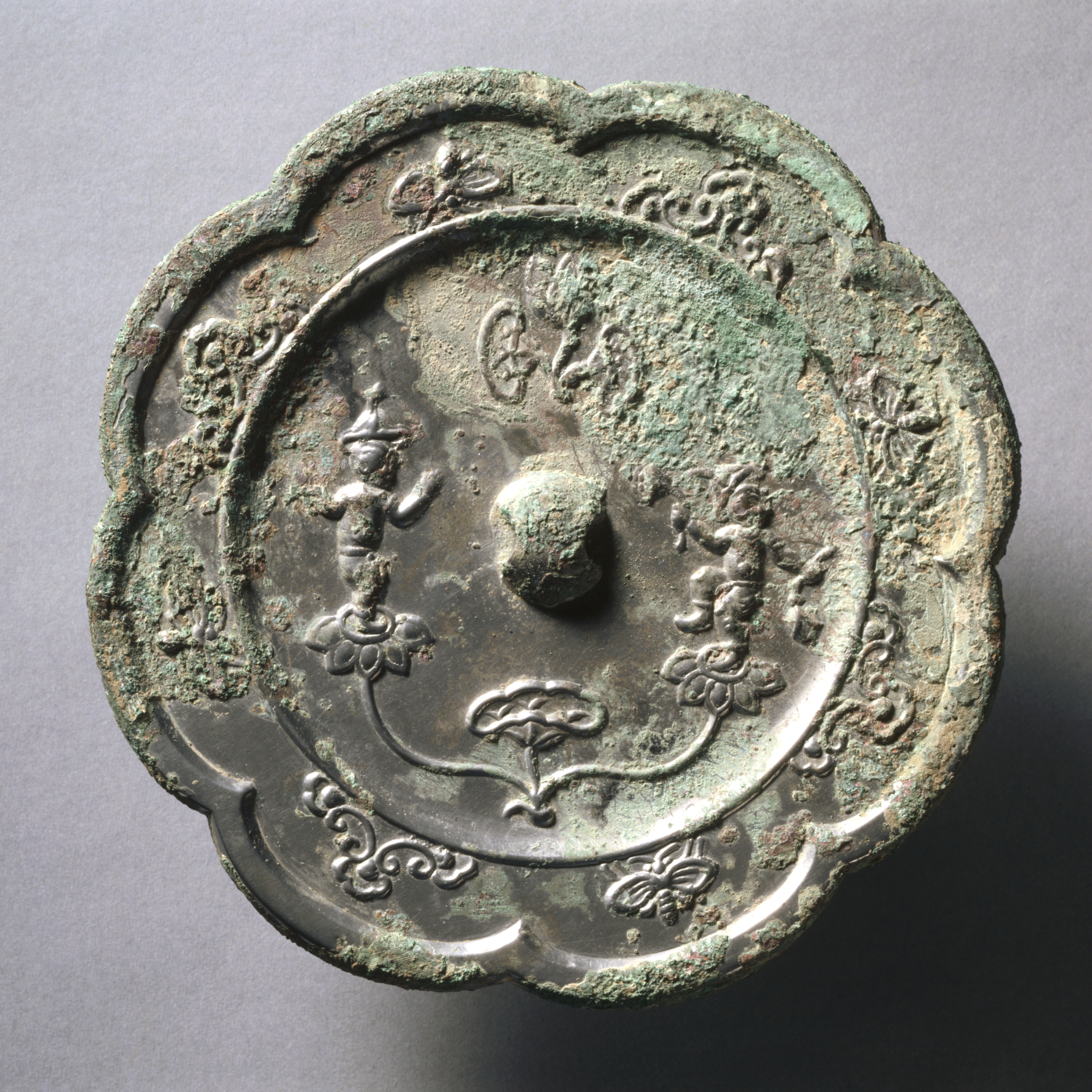 Lobed Mirror with Acrobats on Lotus Blossoms