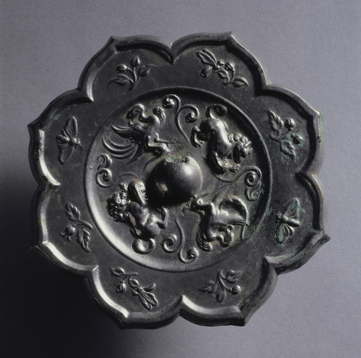 Lobed Mirror with Paired Phoenixes and Floral Displays
