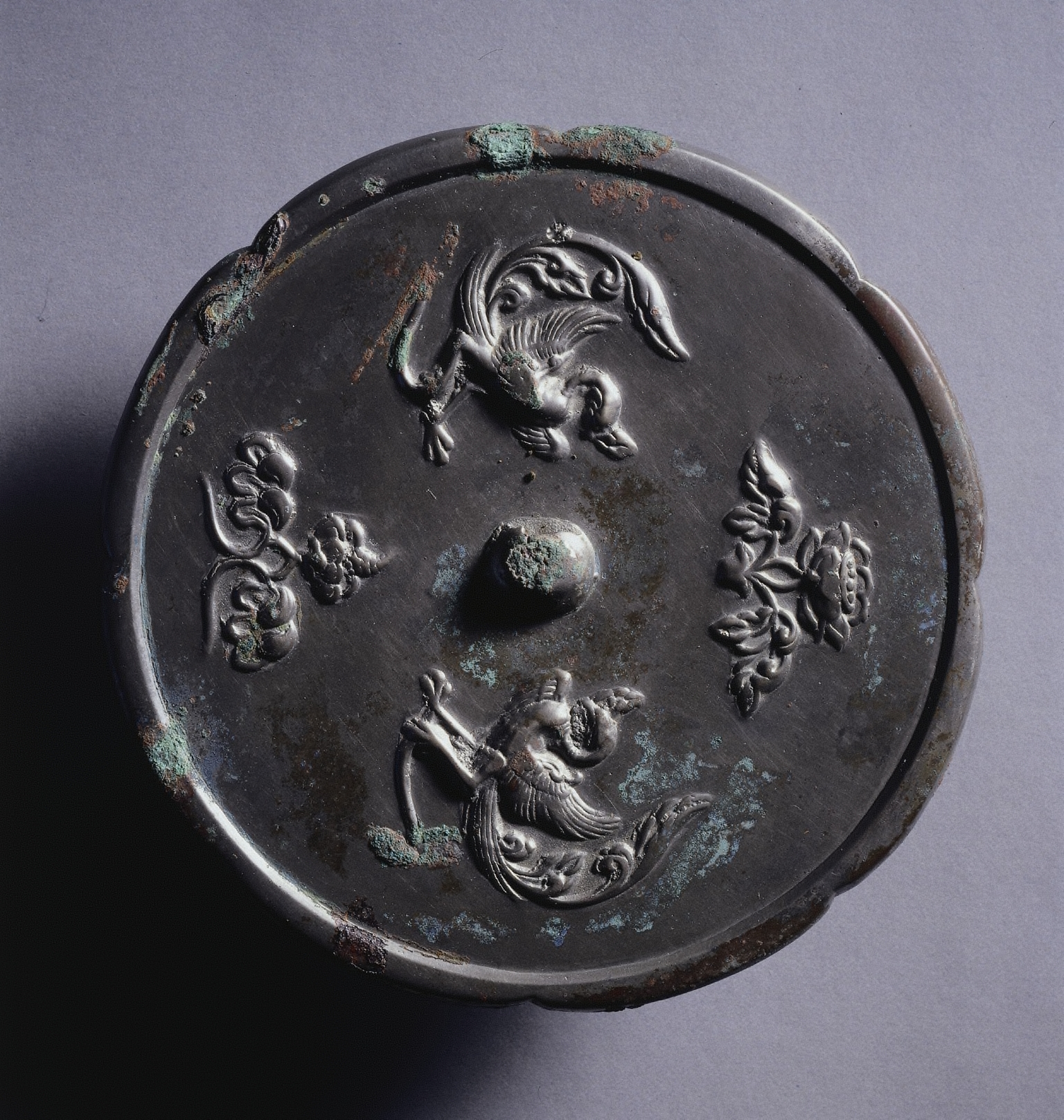 Lobed Mirror with Paired Phoenixes and Floral Displays