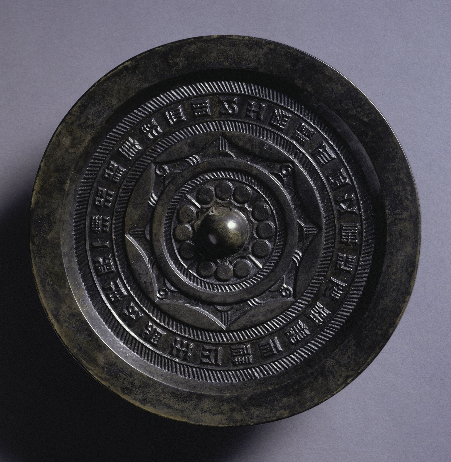 Mirror with Deities and Animals Surrounded by Rings of Squares and Semicircles