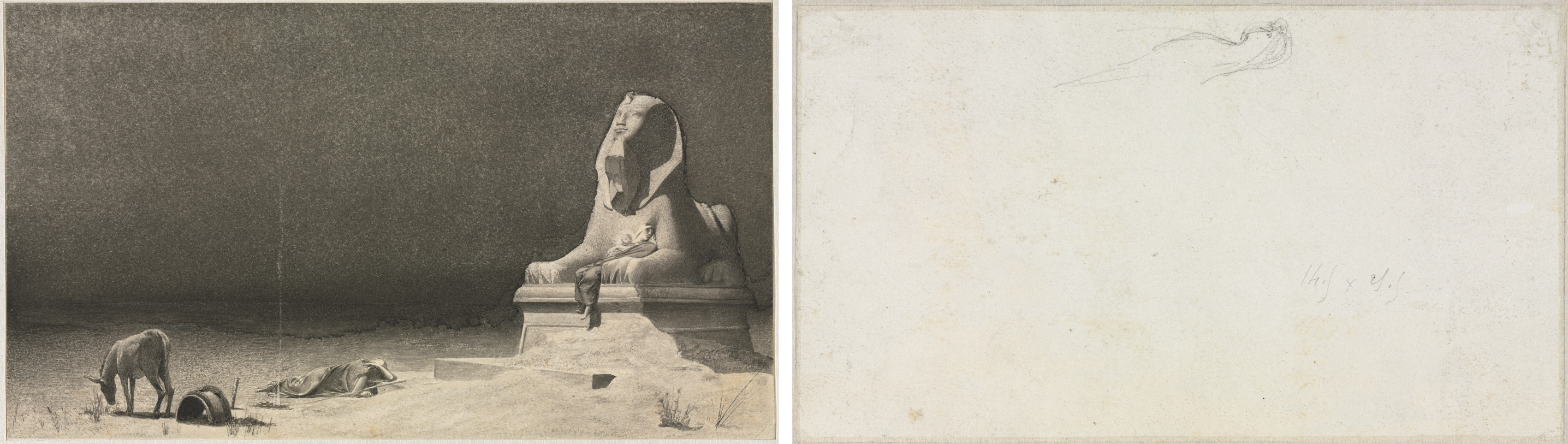 The Rest on the Flight into Egypt (recto); Sketch of a Sphinx [?] (verso)