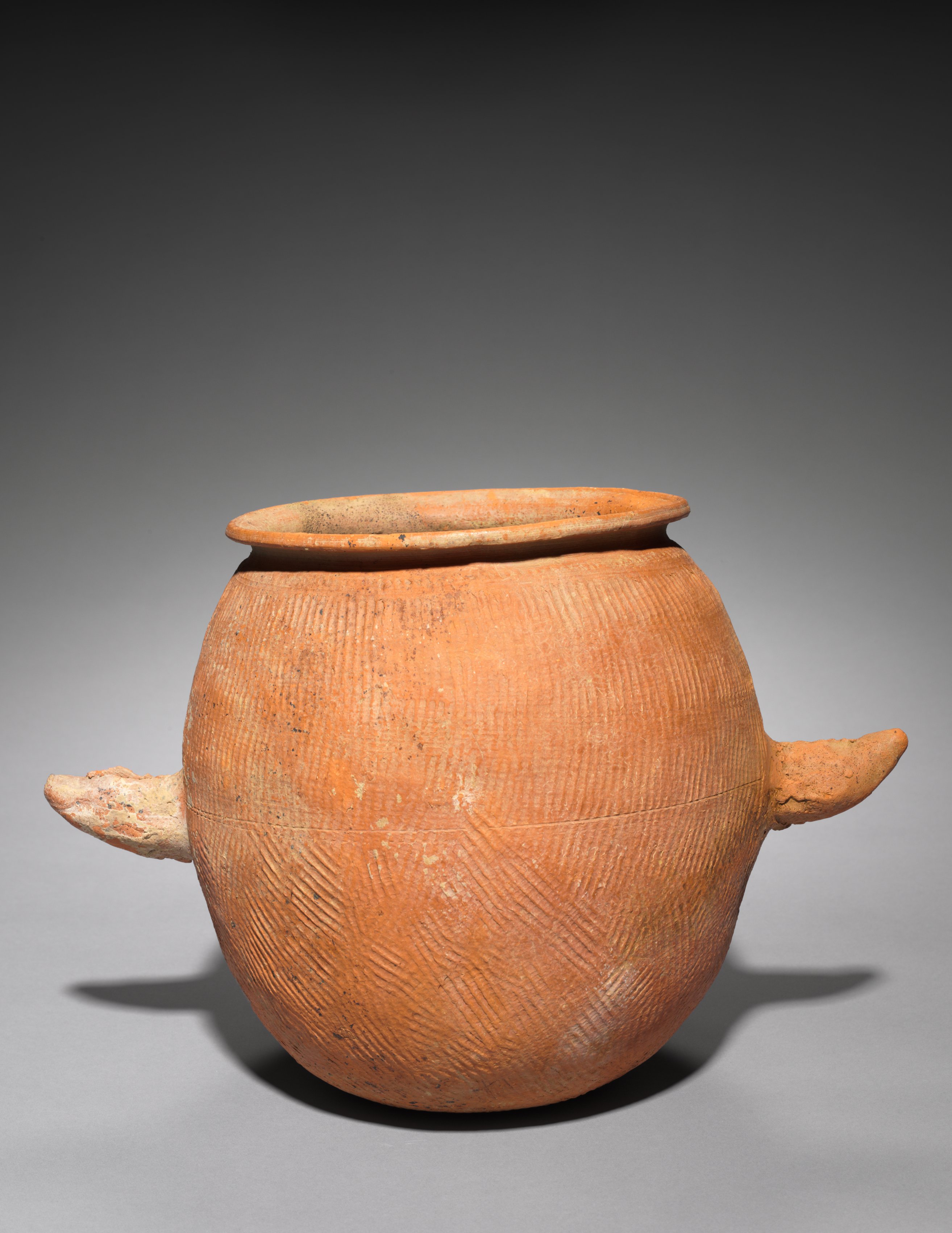 Jar with Loop Handle with Overall Impressed Surface Decoration