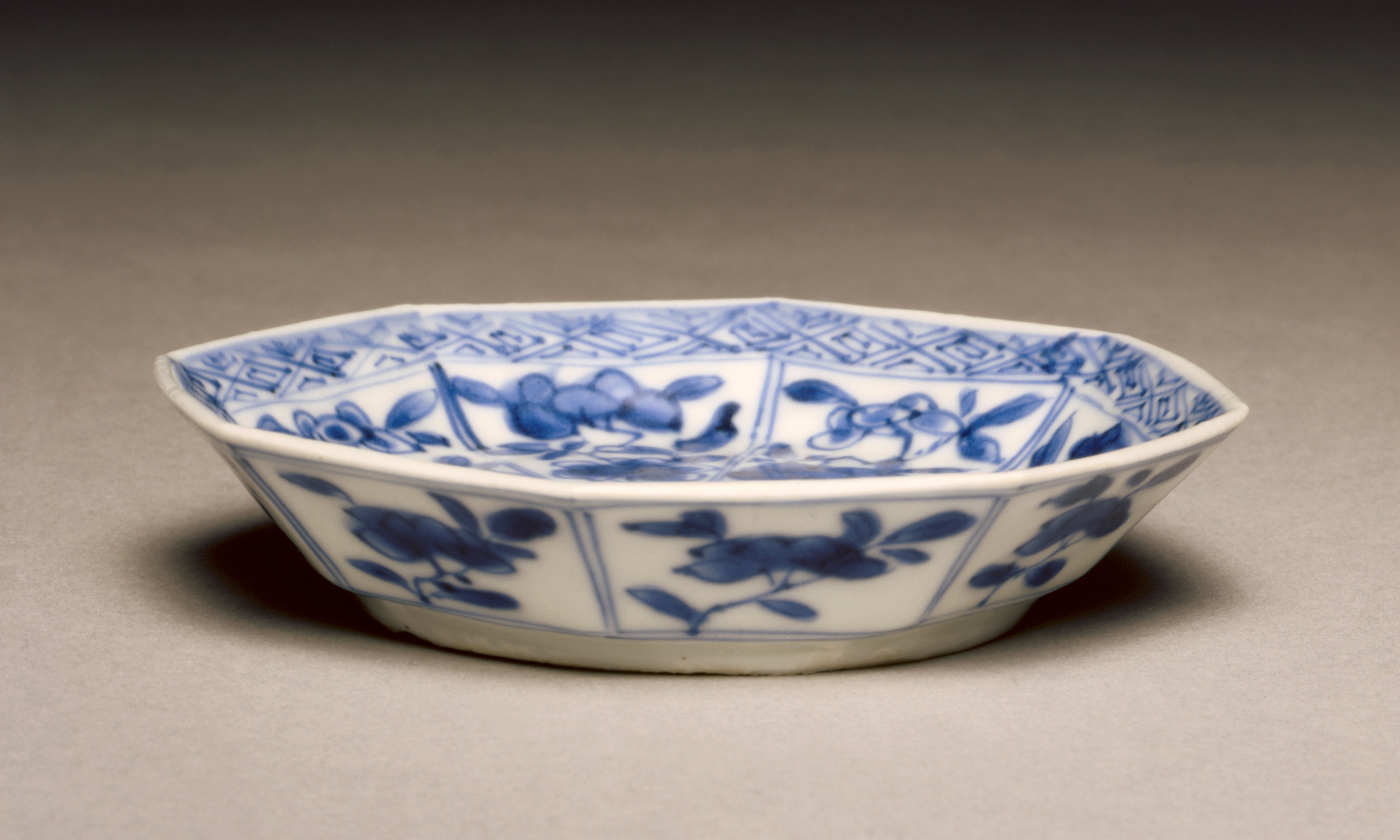 Deep Plate with Eight-Lobed Rim and Decoration of Birds, Flowers and Insects