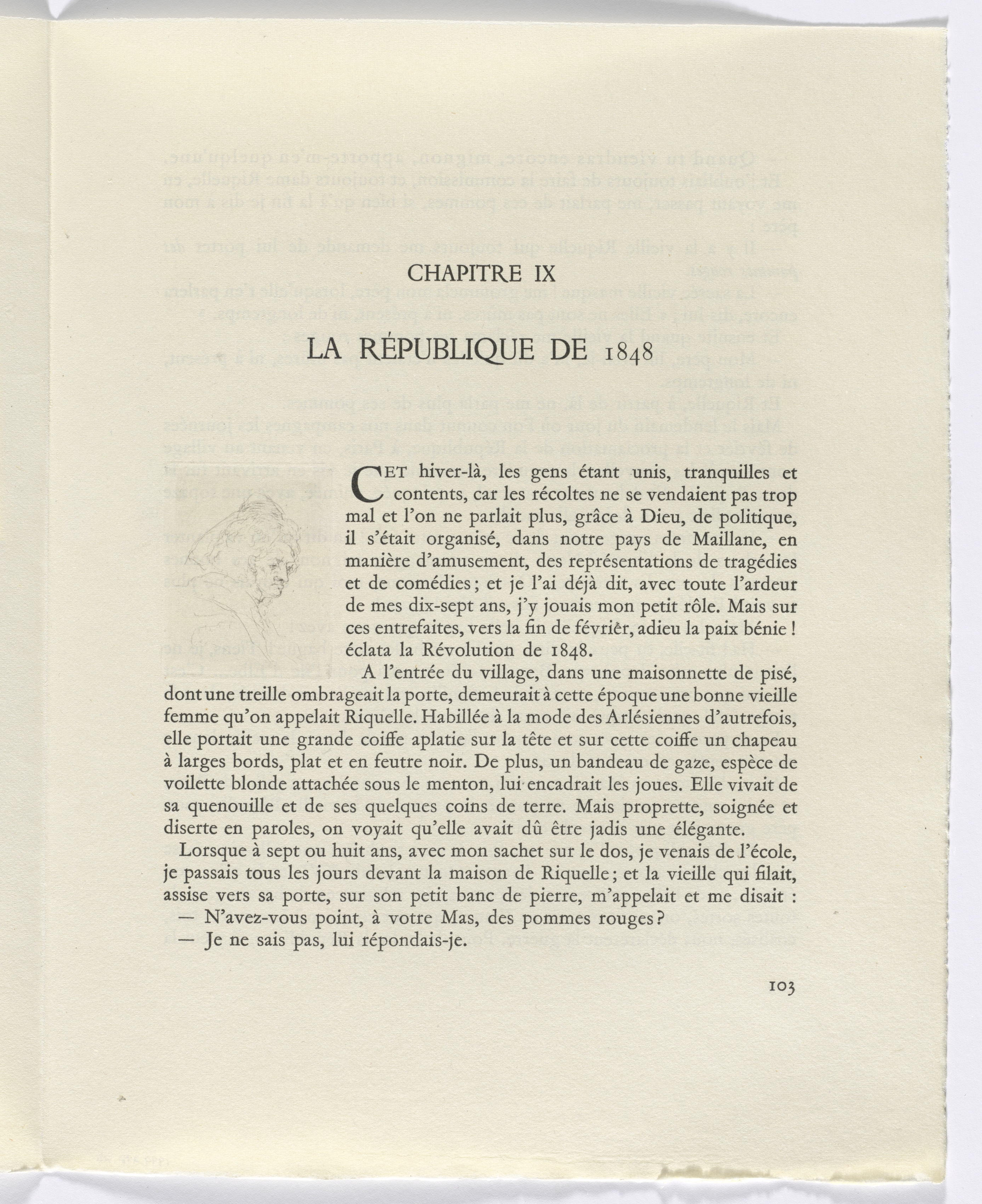 Frédéric Mistral: Mémoires et Recits by Frédéric Mistral: bust of woman in profile (page 9)