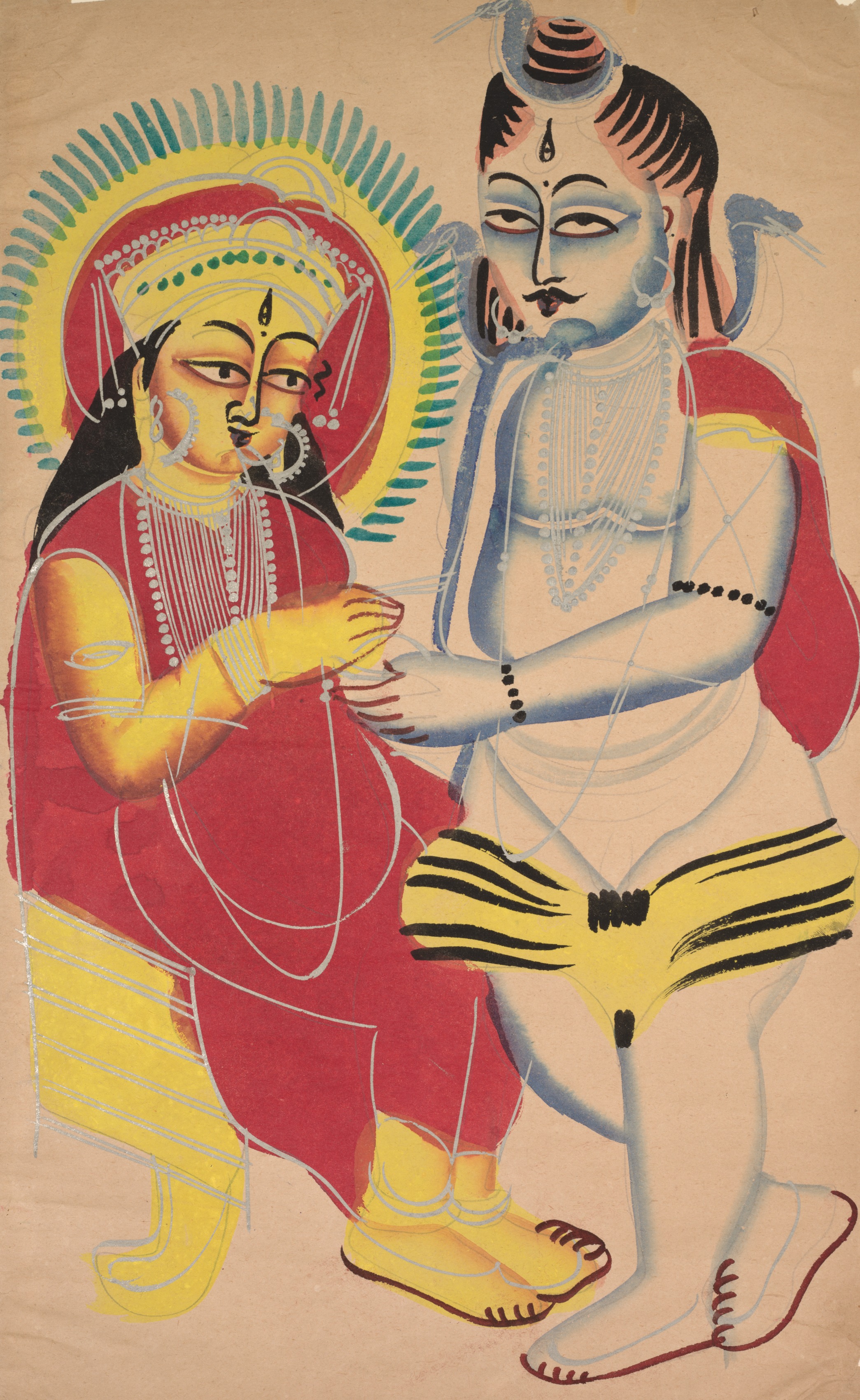 Parvati Placing a Wedding Garland on Shiva (recto), from a Kalighat album