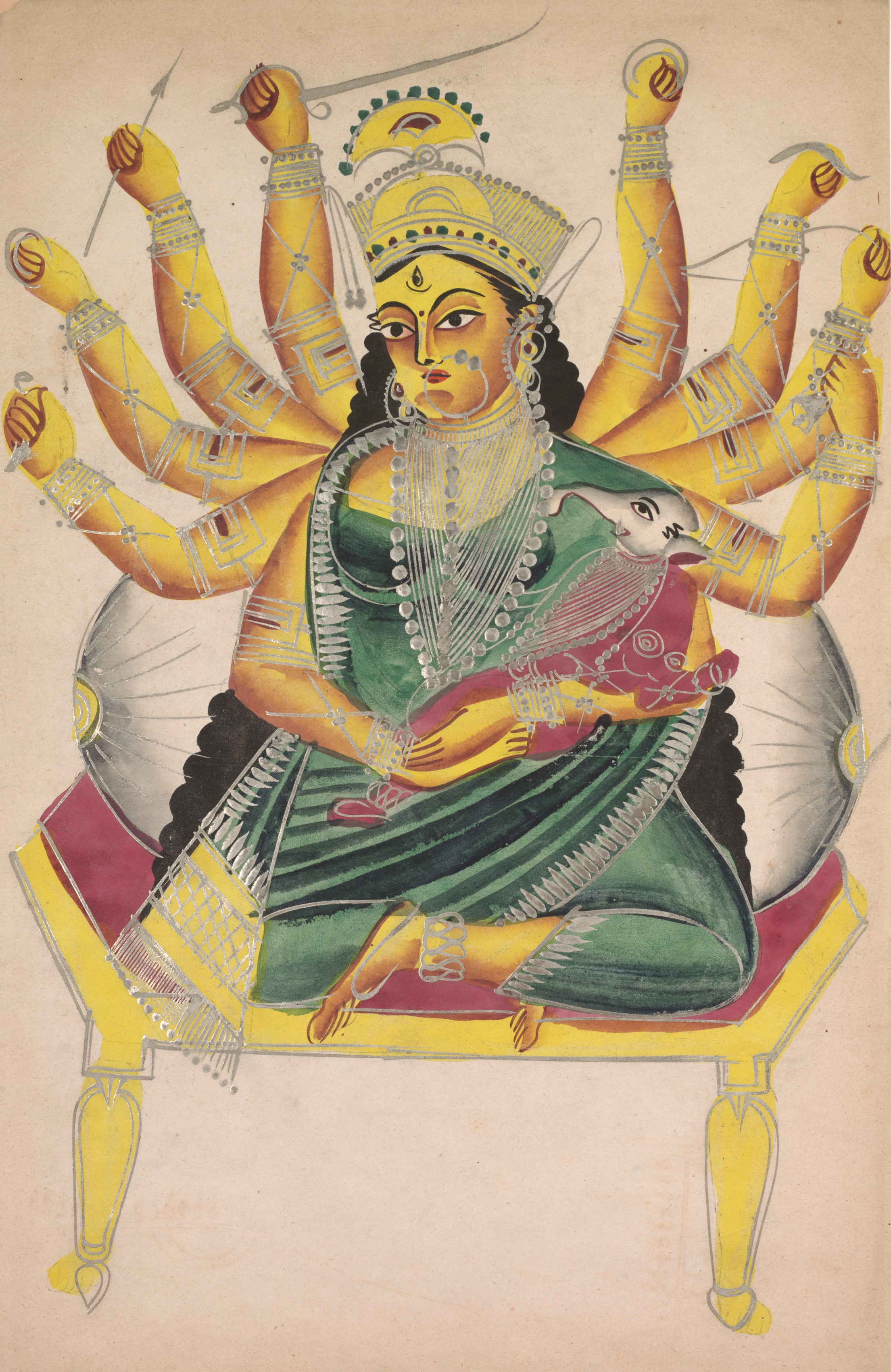 Durga (verso), from a Kalighat album