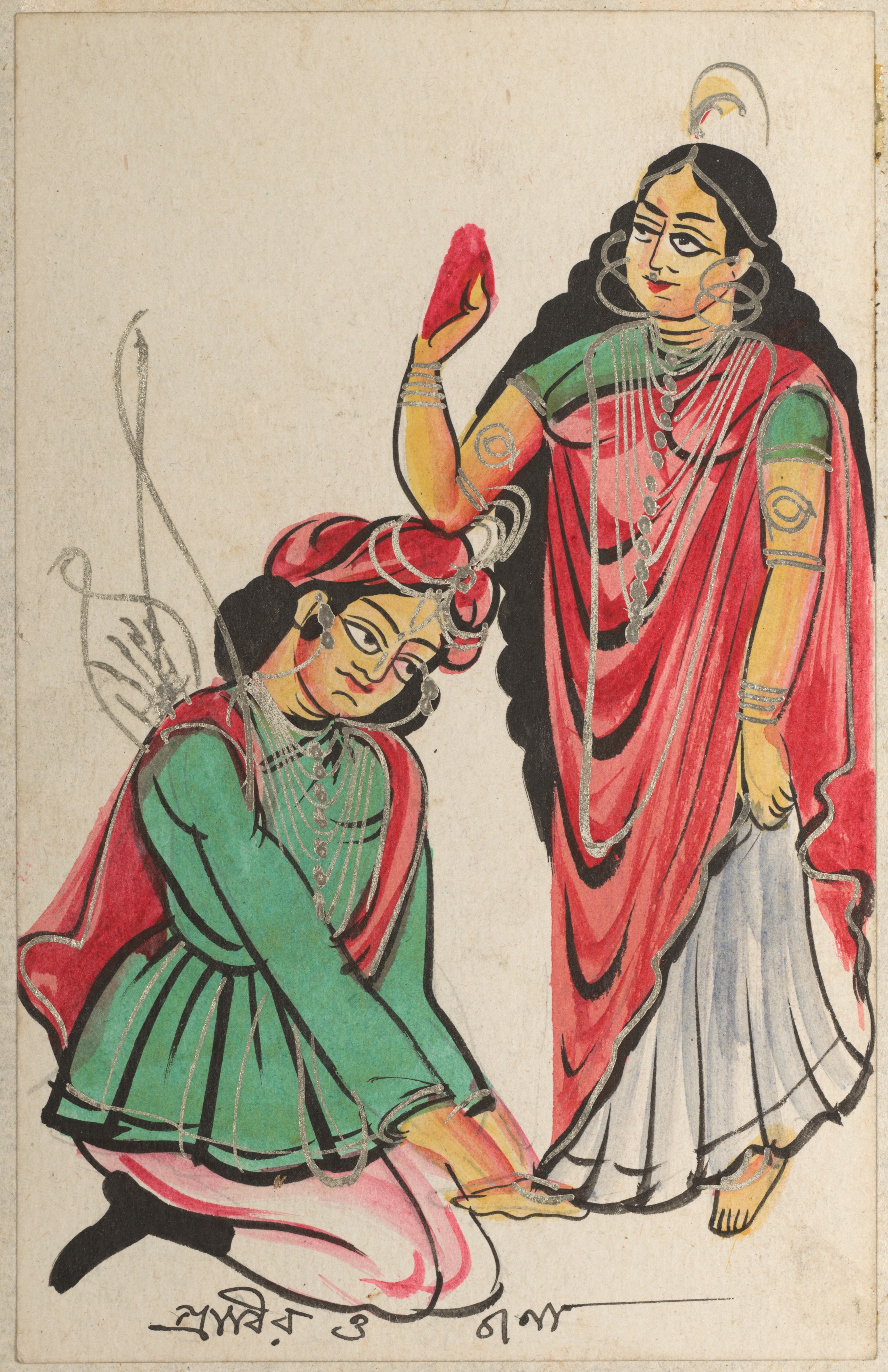 Parvati Placing a Wedding Garland on Shiva (recto), from a Kalighat album