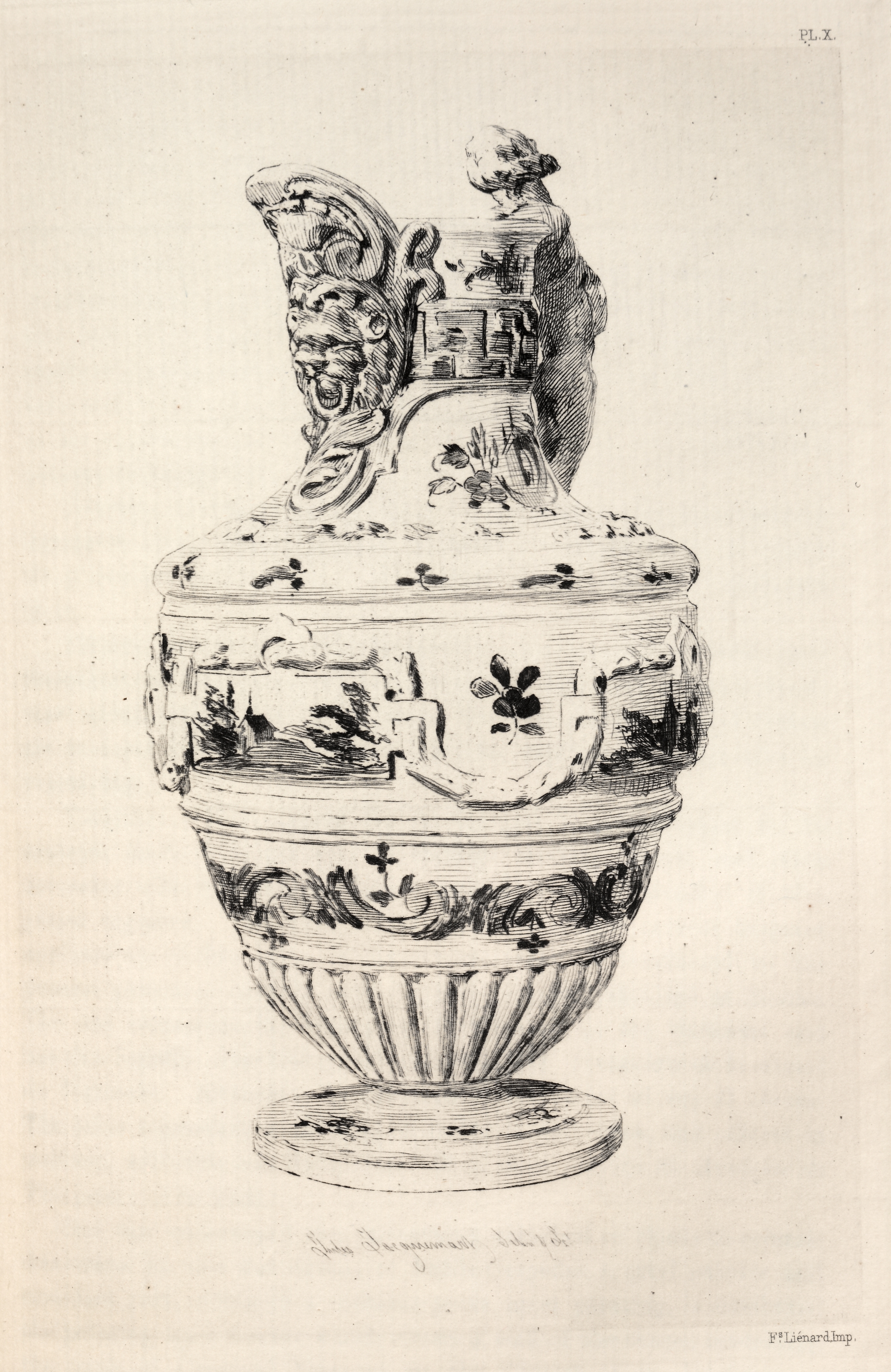 History of the Ceramic Art: A Descriptive and Philosophical Study of the Pottery of All Ages and All Nations: Italy: Renaissance- Majolica of Urbino- Ewer (Plate VIII)