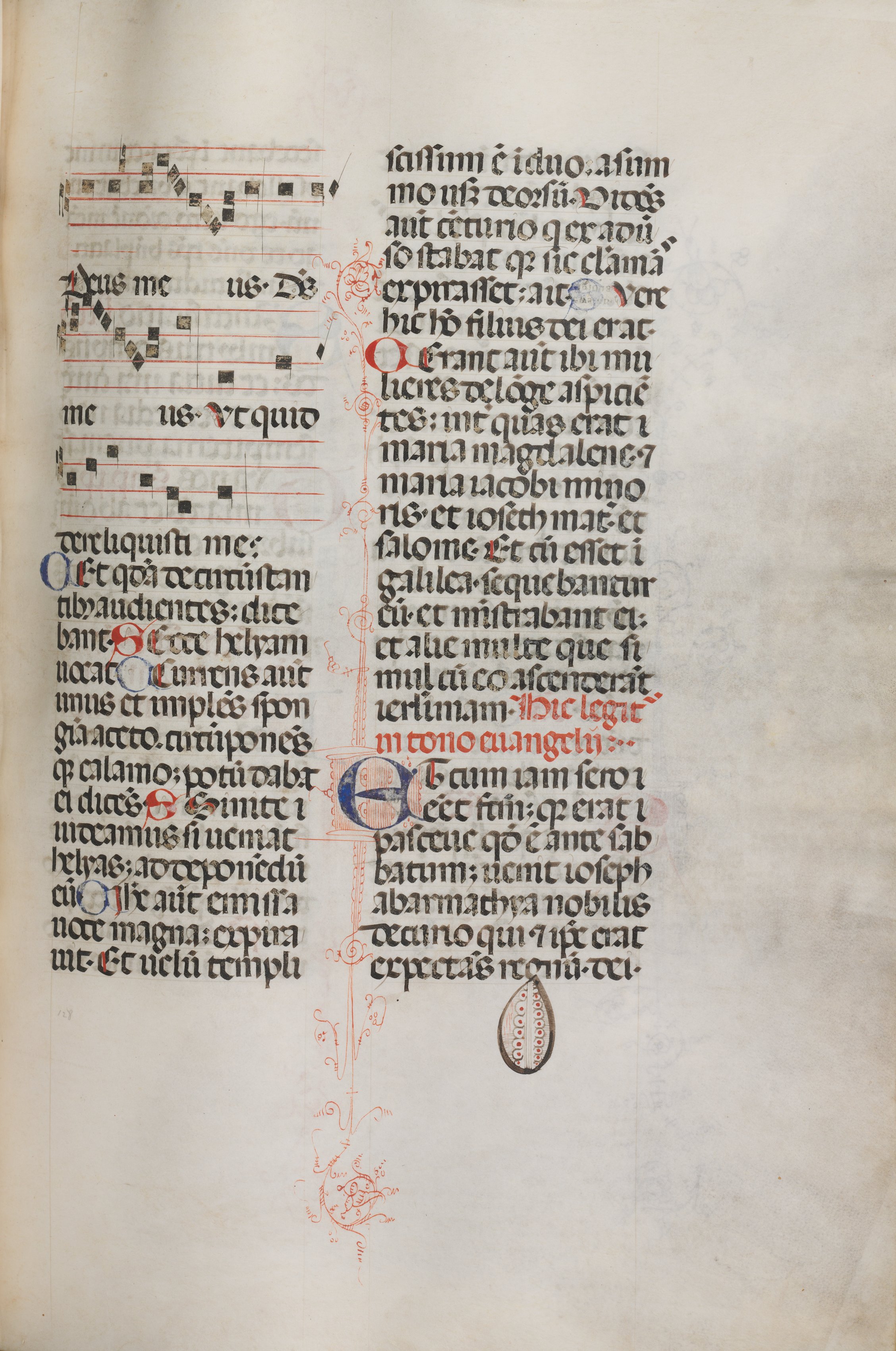Missale: Fol. 128v: contains music for "Hely Hely Lama etc." within St. Mattion Passion