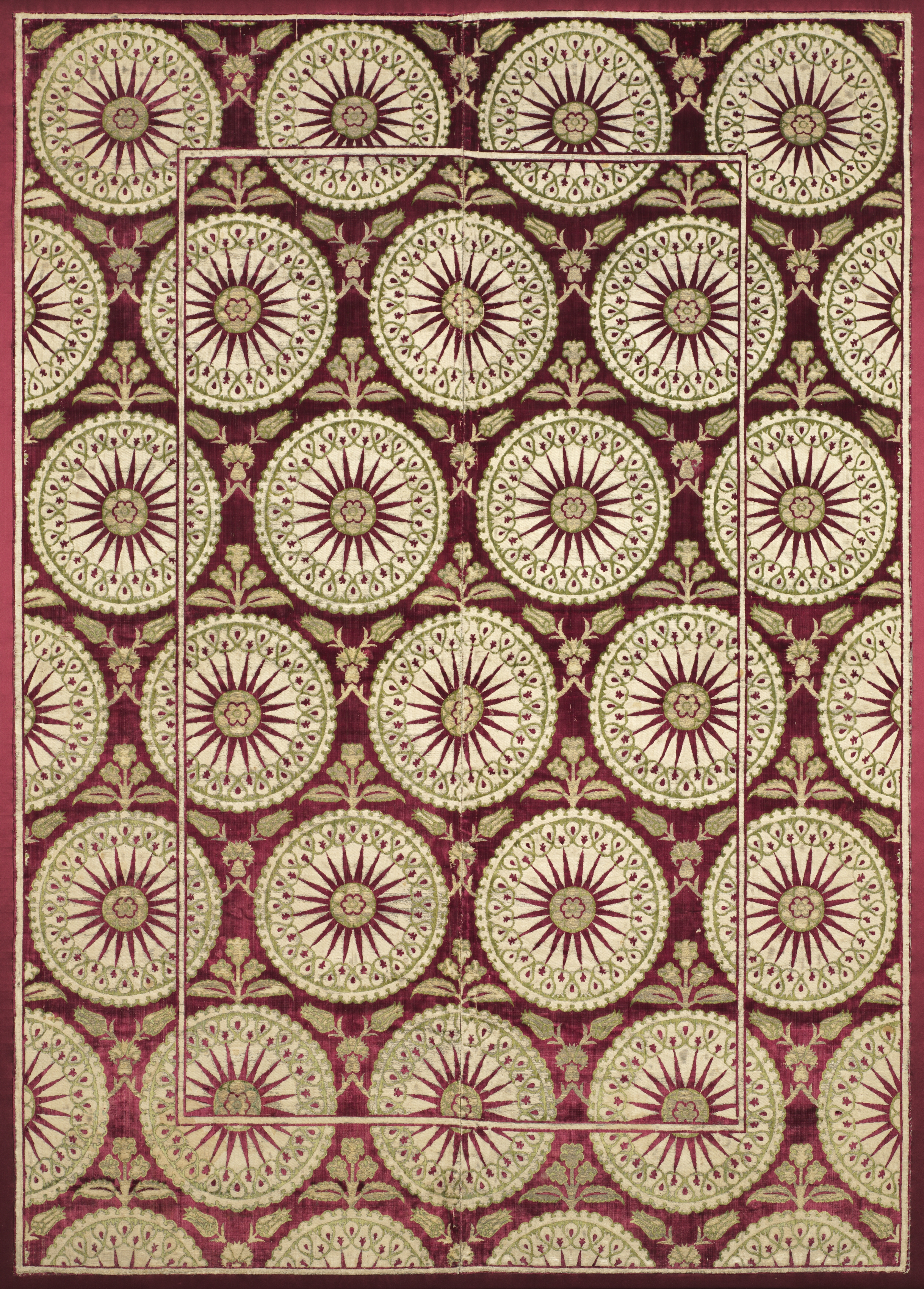 Brocaded velvet with medallions in ogival lattice