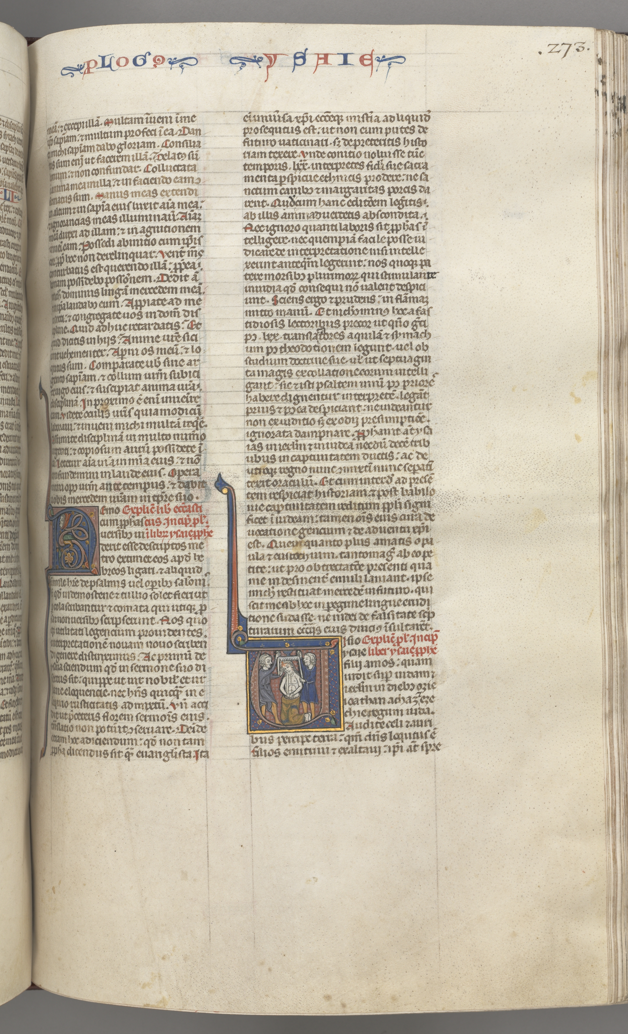 Fol. 273r, Isaiah, historiated initial V, the martyrdom of Isaiah