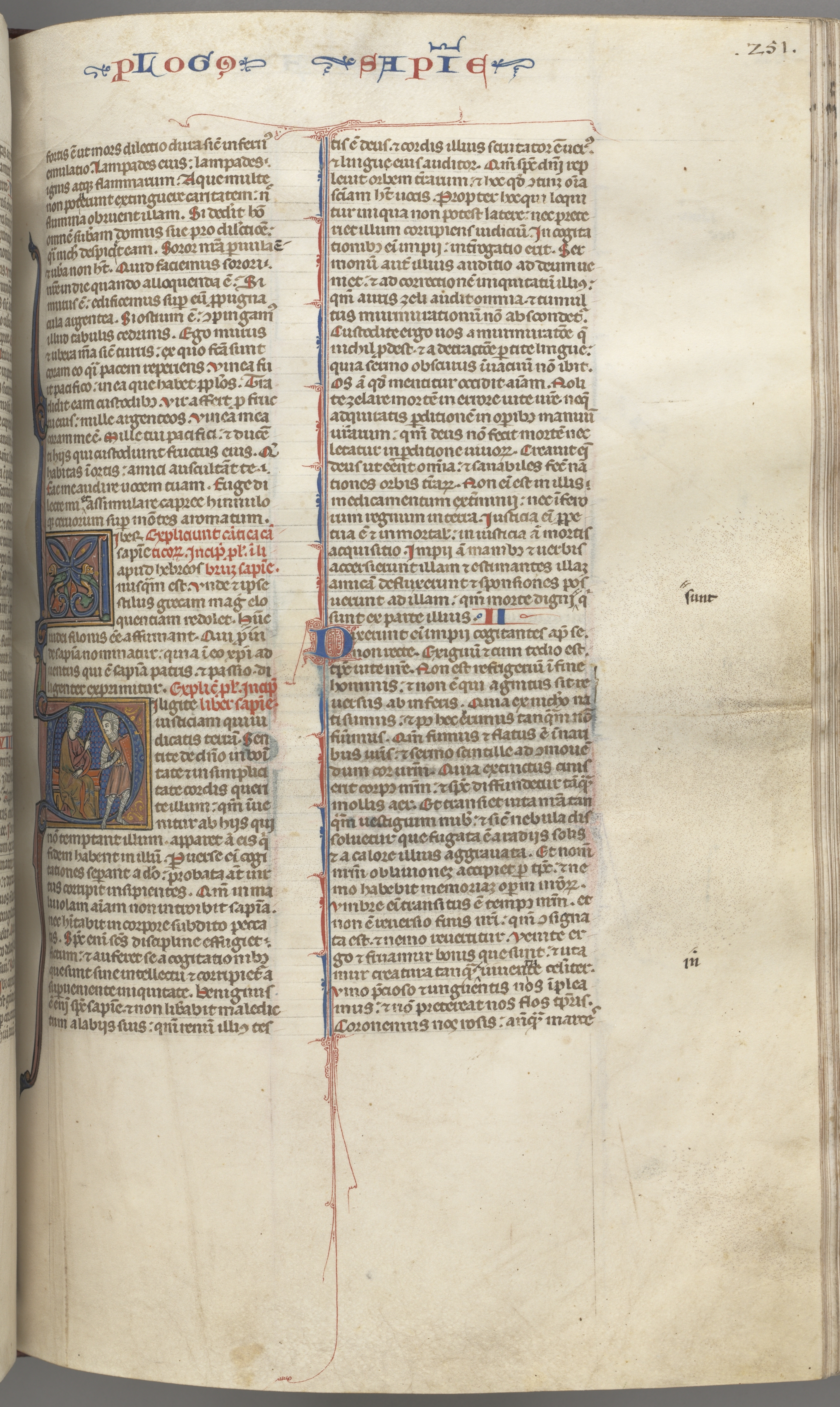 Fol. 251 r, Wisdom, historiated initial D, Solomon instructing a soldier